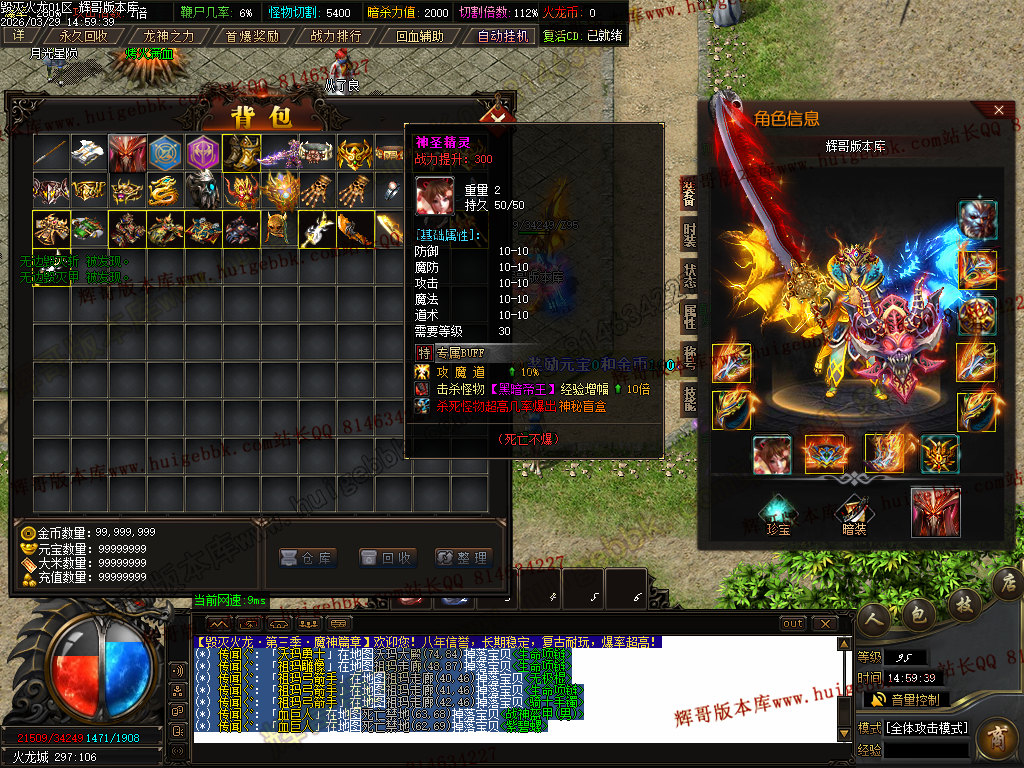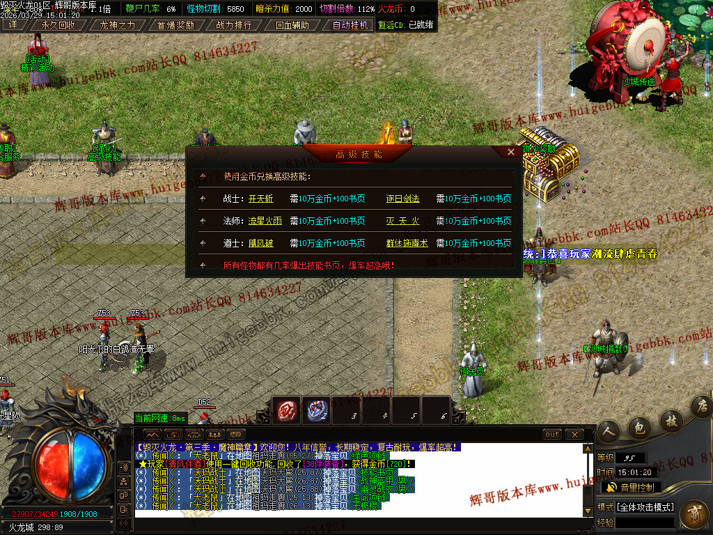 战士(PK超猛):四级烈火剑法,开天斩,逐日剑法攻击高的一逼(店铺有售)攻速快体验感强。