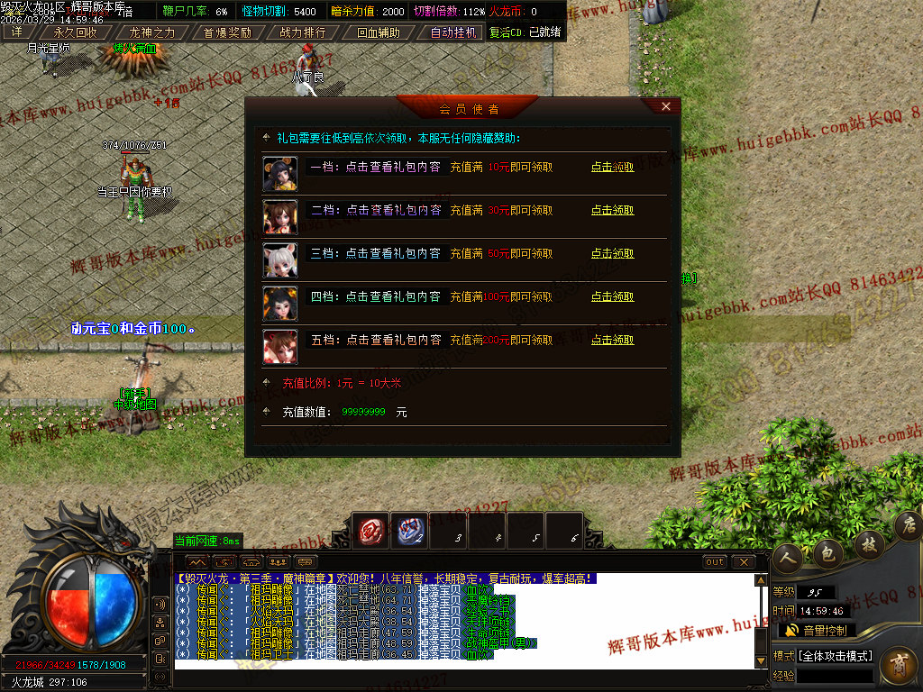 RMB充值比例:1元= 1 RMB 1rmb点=5000YB + 10金币 + 1积分