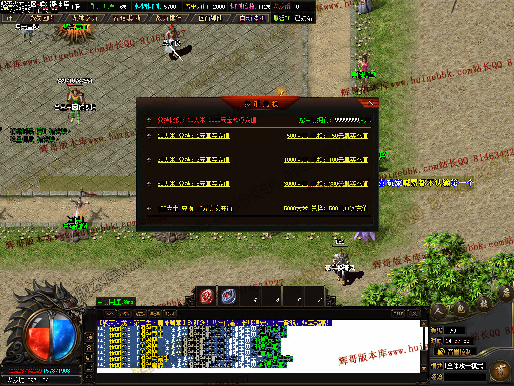 玩法介绍如下: RMB为游戏内主流货币,通过充值,打怪,回收装备,玩家买卖交易等等获取