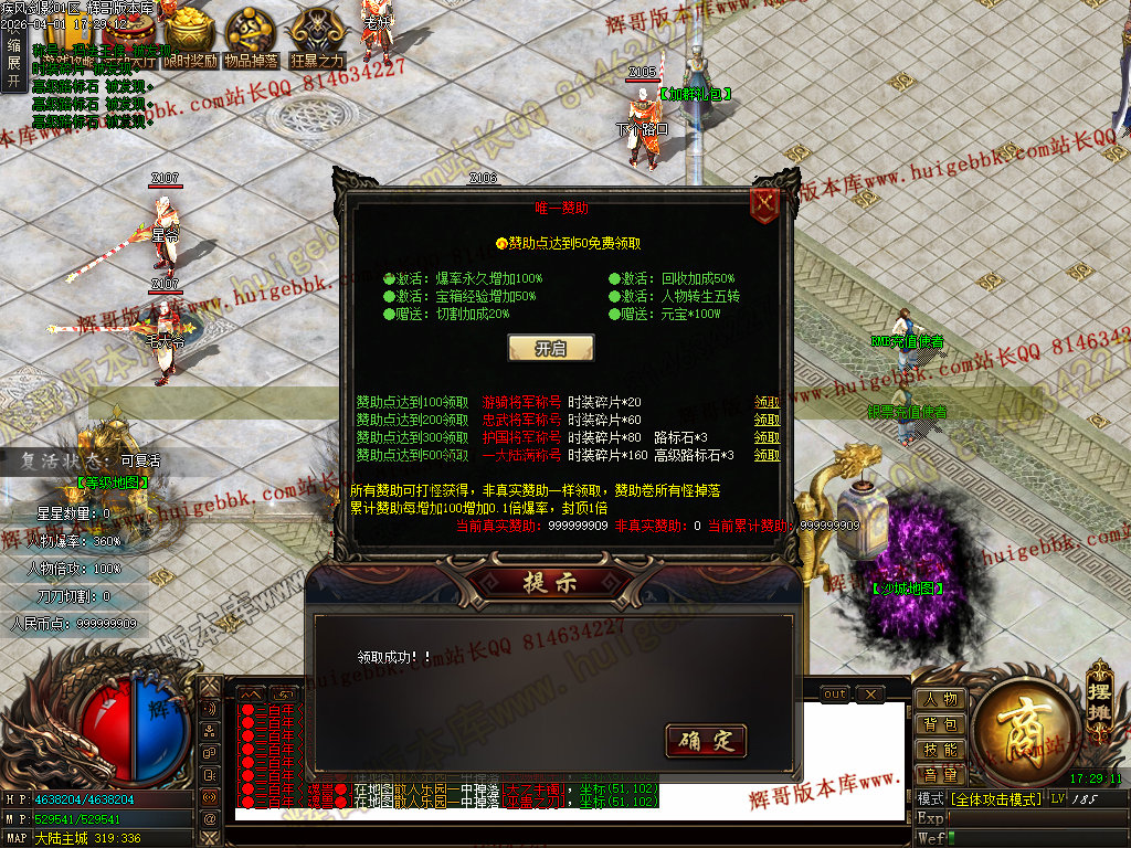 如果发现影响开区的大问题,可联系站长进行免费修复,细节问题自己处理不负责细节问题,