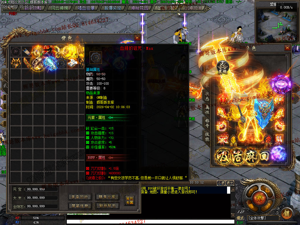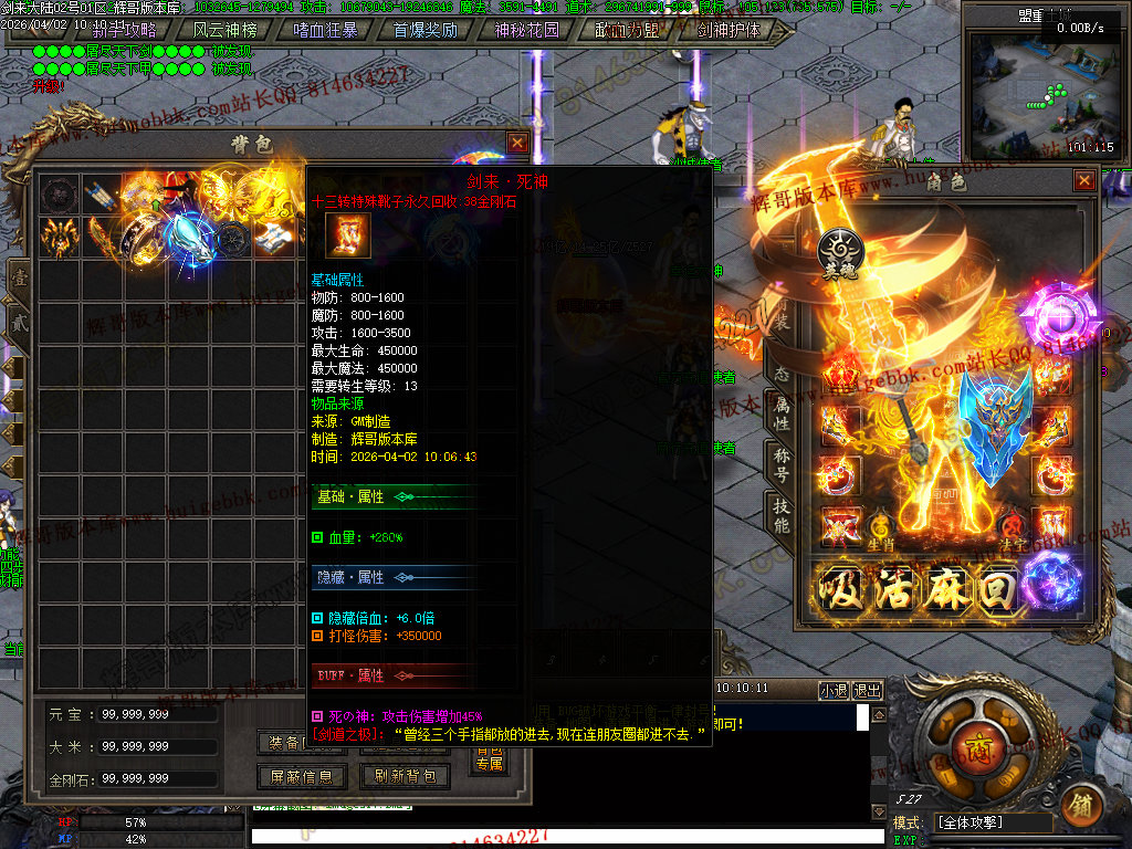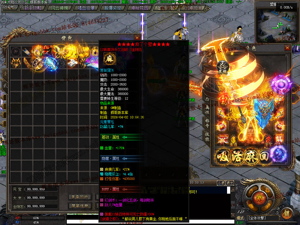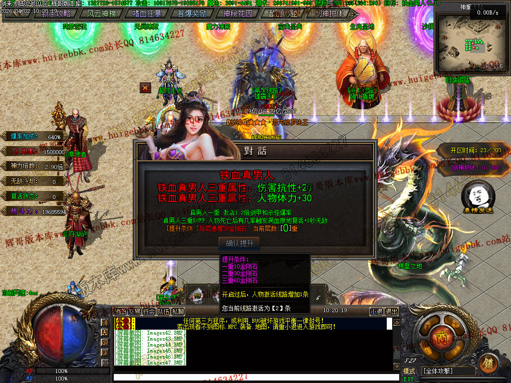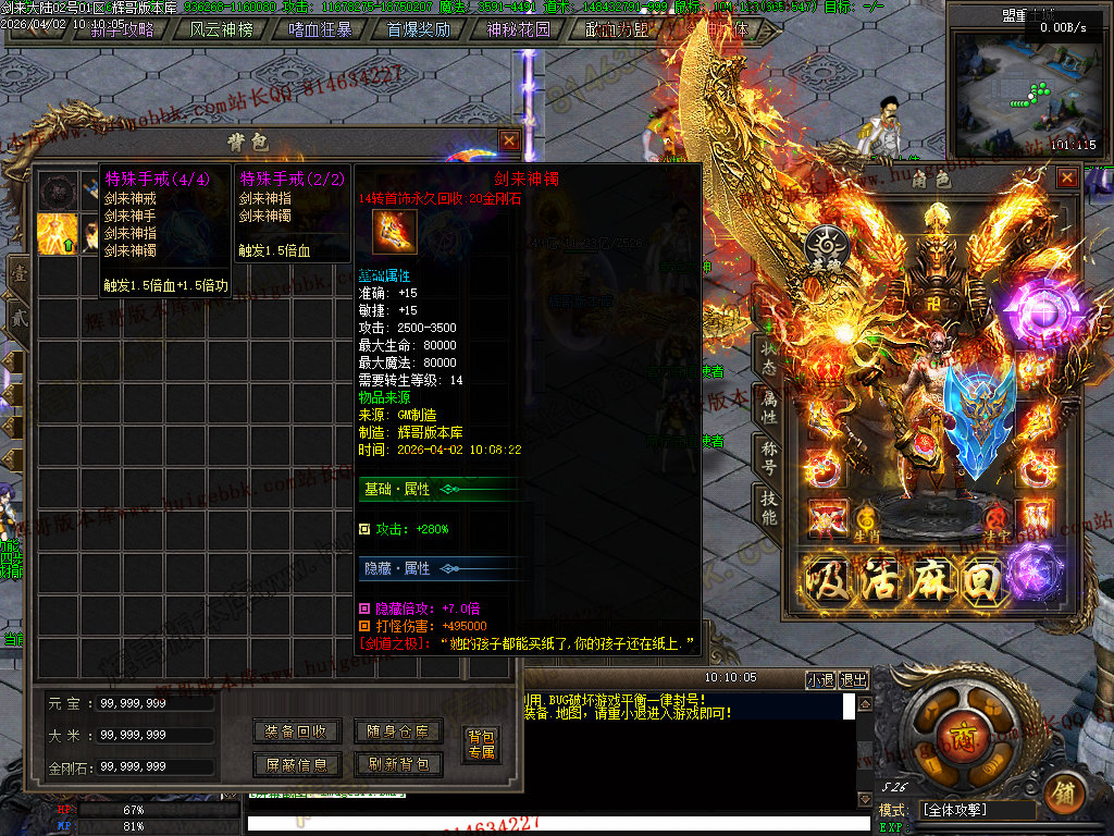 血之修罗(只需66金刚石一键满)升满后增加人物倍功,打架抢怪必备神器