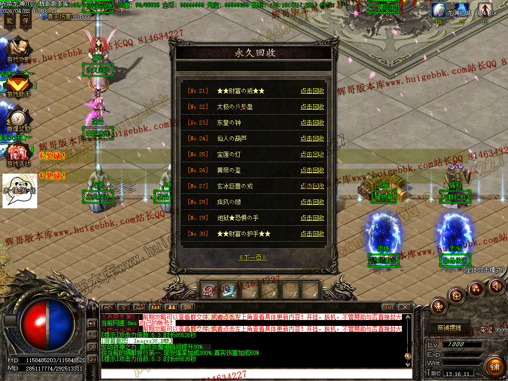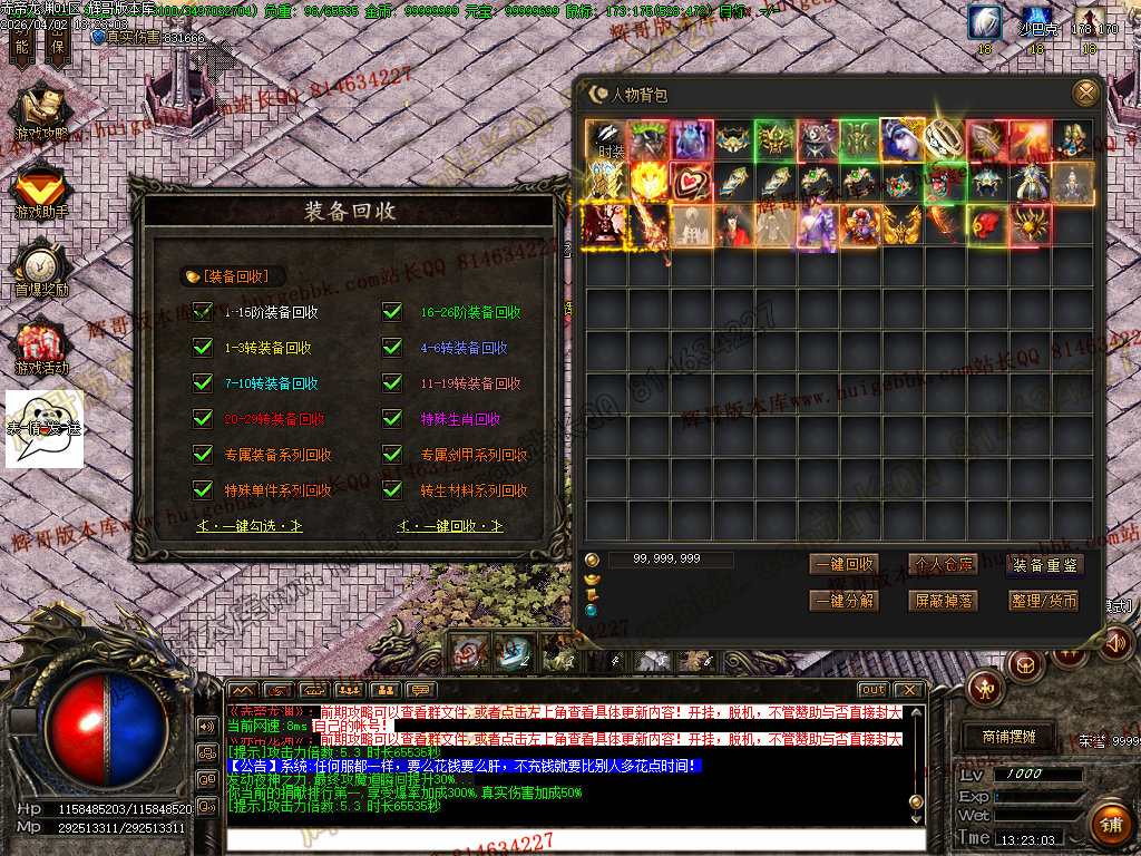 包括神魔之巅以上的所有首饰,强化过的武器和衣服!出此功能只是方便挂机党,请谨慎开启!否则后果自负!