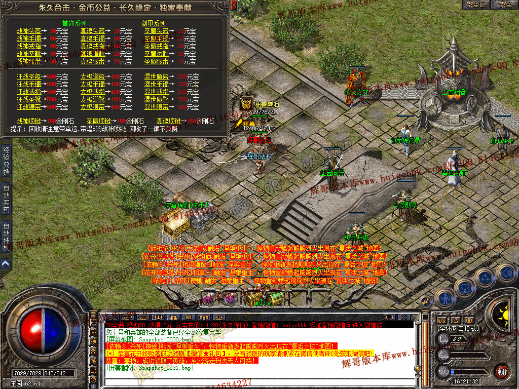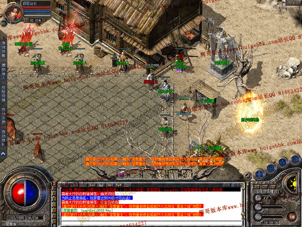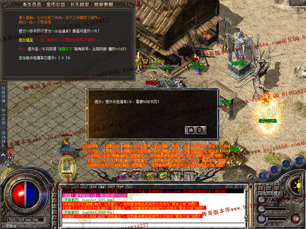 复活城地图 所有怪物被打死 30%的几率进入复活城 全新偷怪玩法。