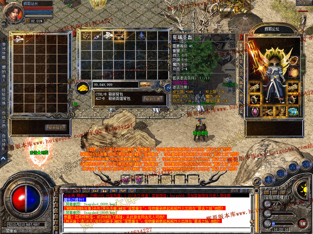 上古神器玩法:打到对应装备激活即可可获得牛逼属性加成。