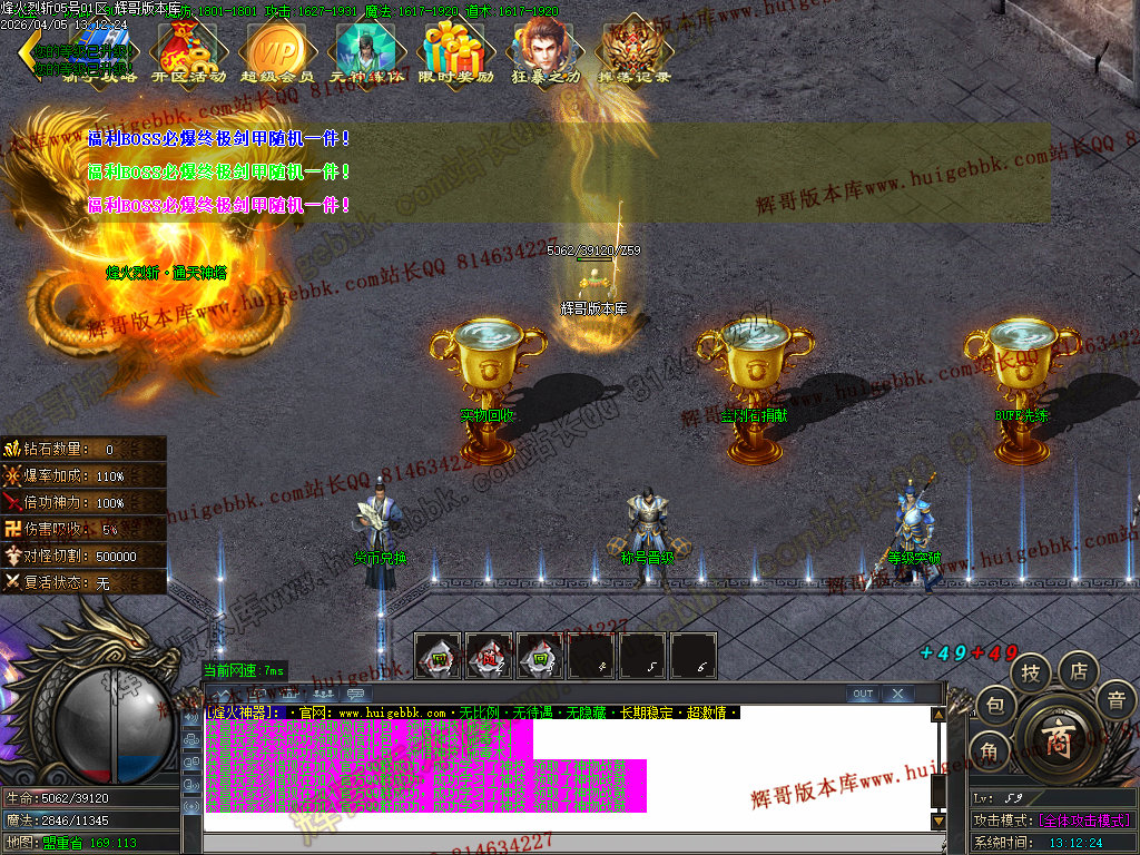 本服最新推出鞭尸系统,几率使怪物复活,多打一些boss哦!