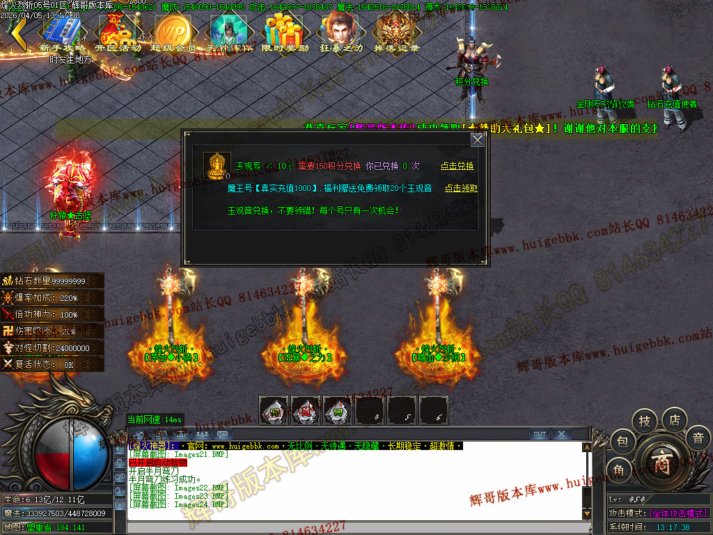充值32元RMB,30RMB开启沙城捐献 获得刀刀切割怪物500万 怪物爆率增加100%