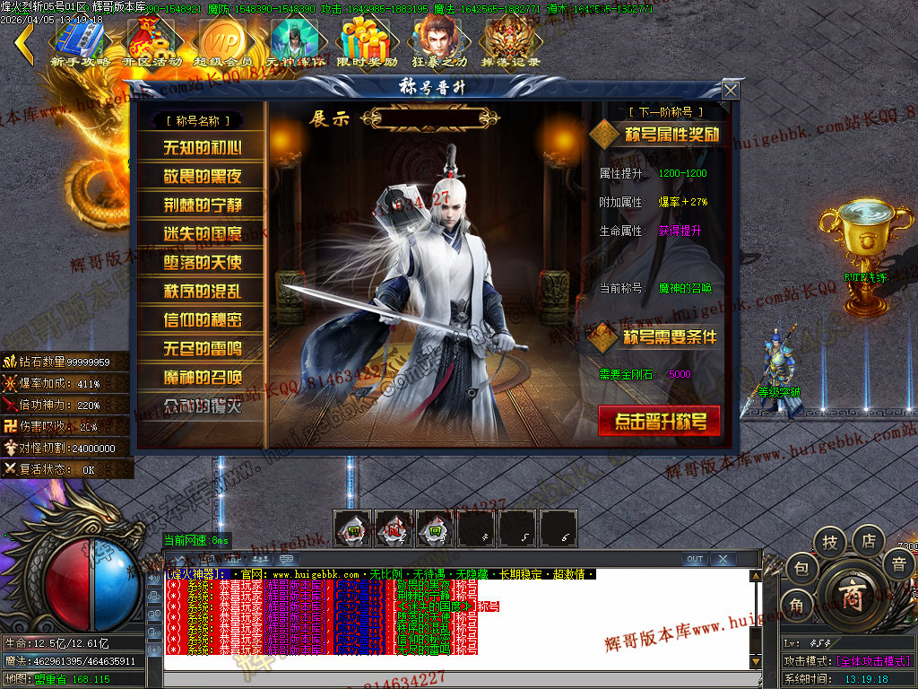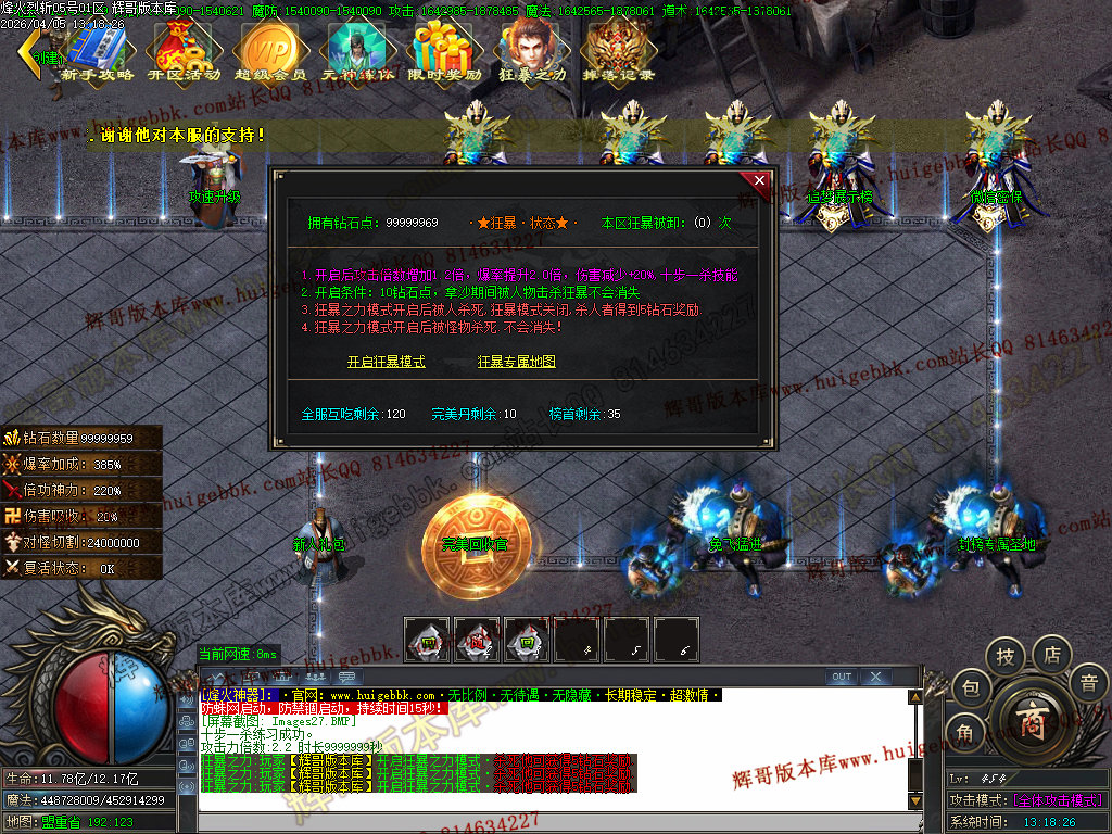 2RMB开启炼狱狂暴 获得20%血量攻击加成 怪物爆率增加100%