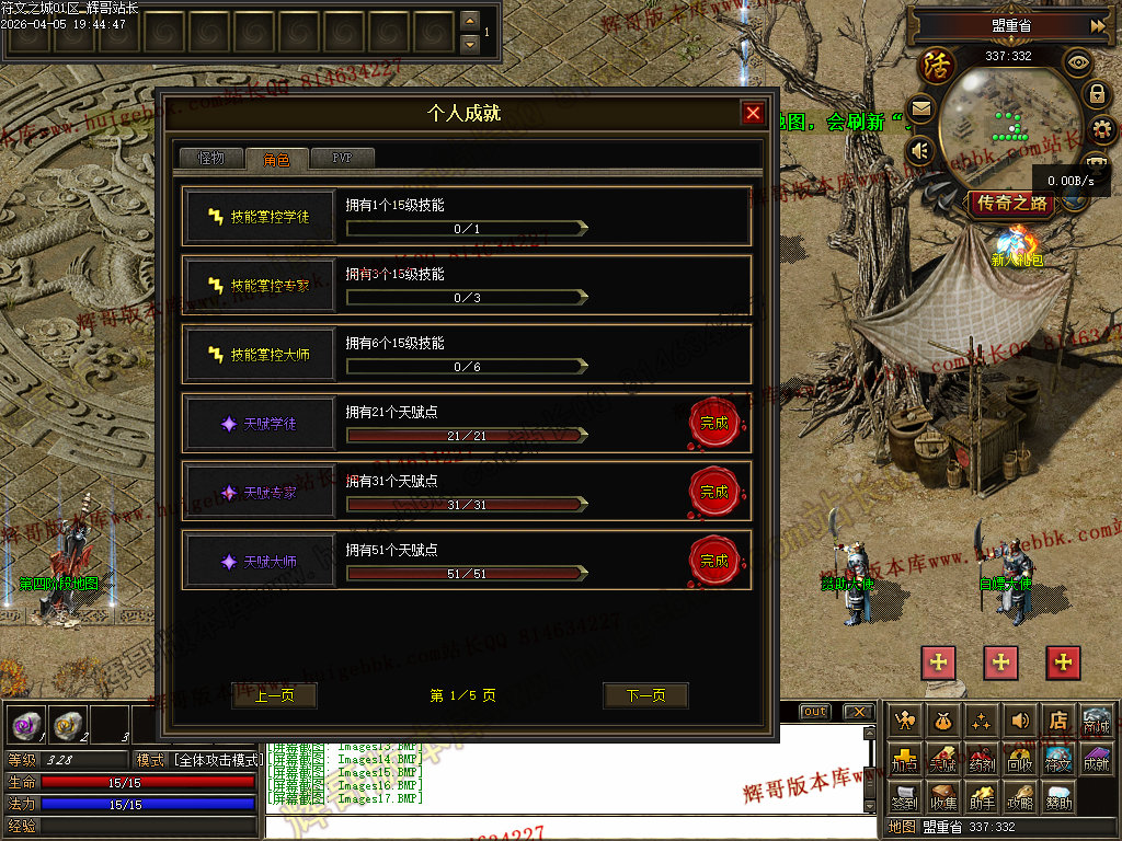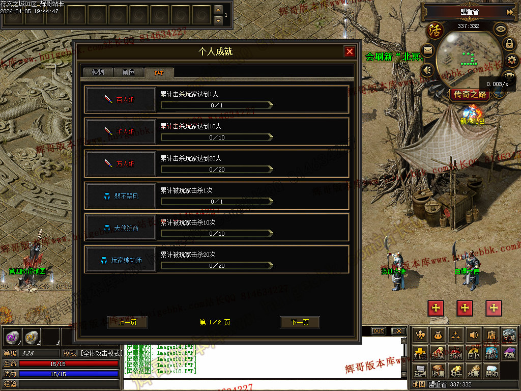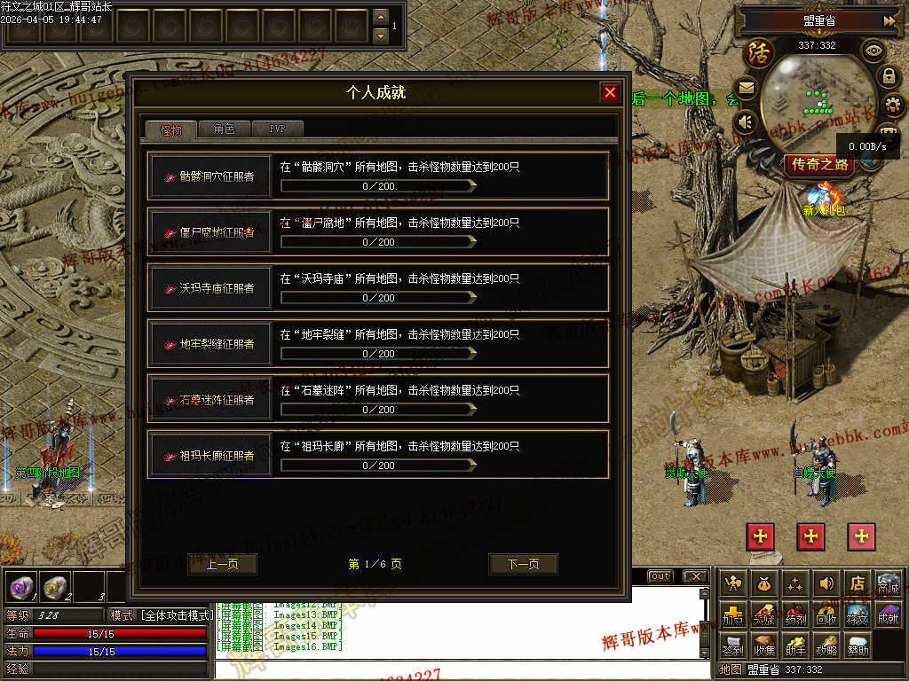 杀猫逐鹿出新村 斩妖除魔入盟重 近观绿涛汇碧海 远眺青山有苍松