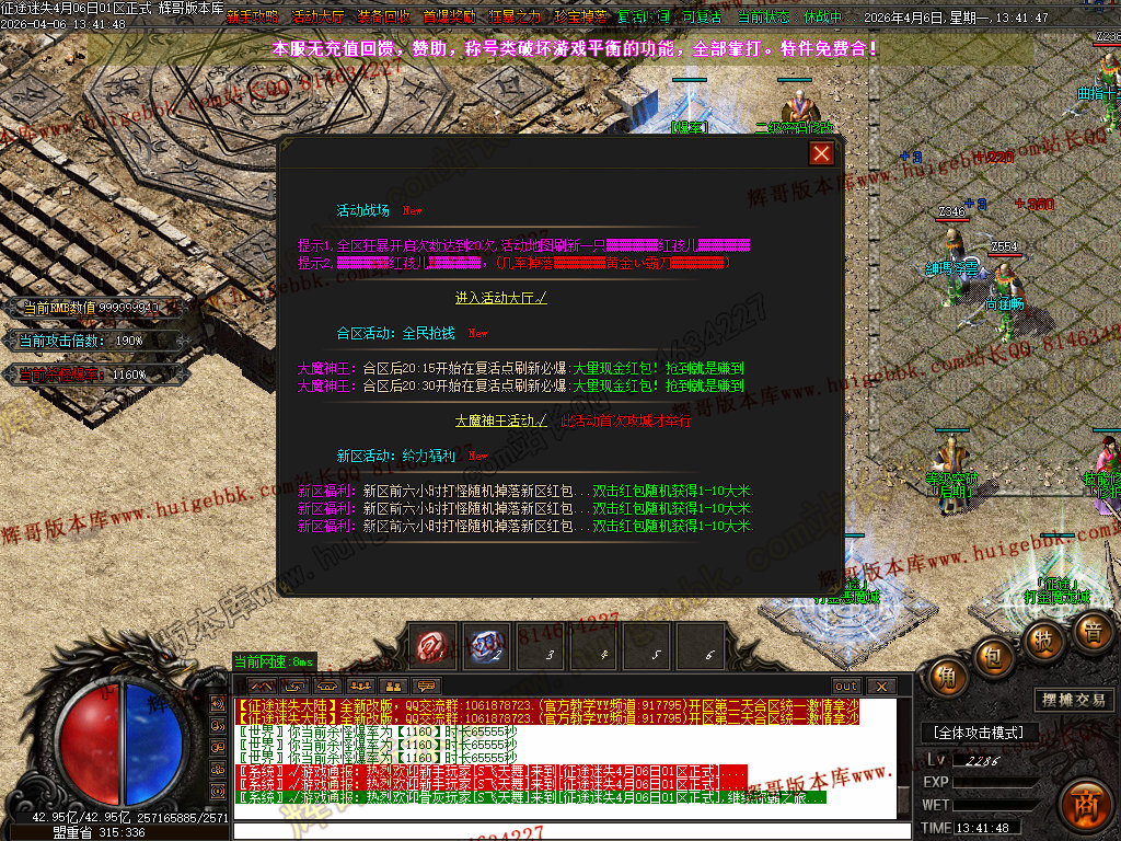 如果发现影响开区的大问题,可联系站长进行免费修复,细节问题自己处理不负责细节问题,