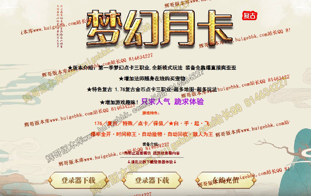 修护拾取鉴定+3 纯复古金币服 内容玩法丰富 五行 天赋 生肖 修炼 装备成长等等具体自行探索吧。