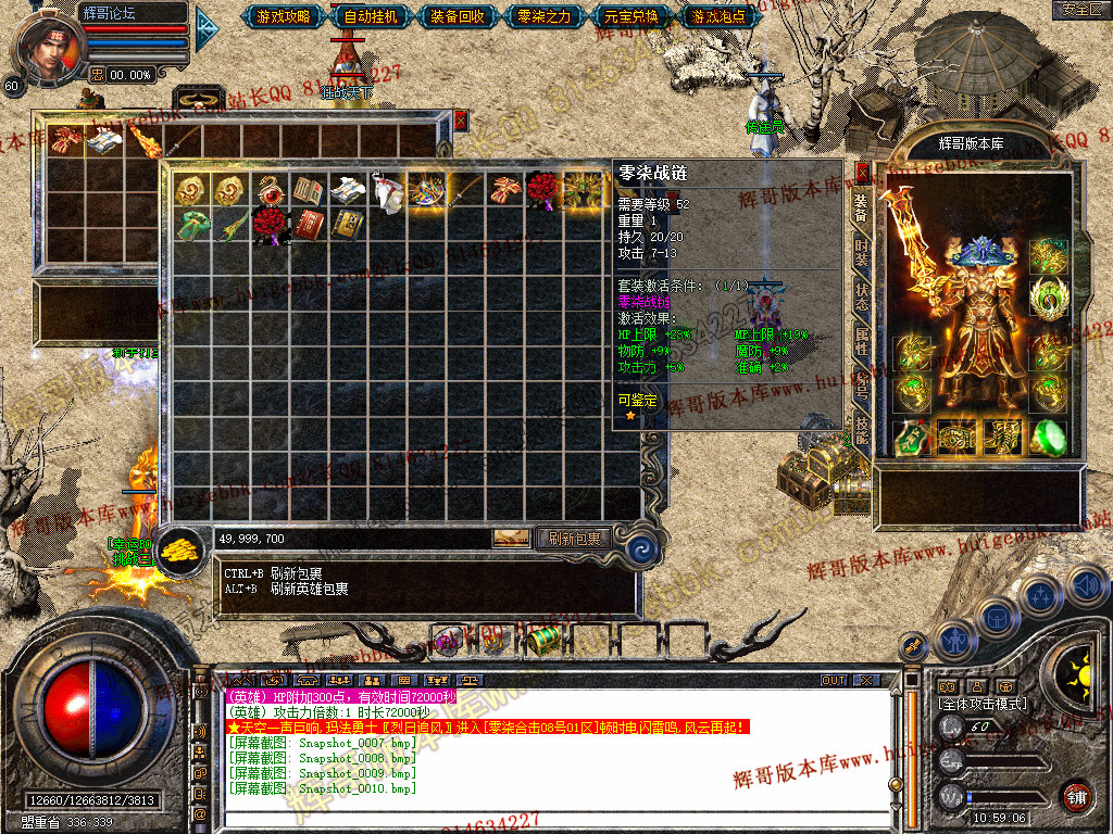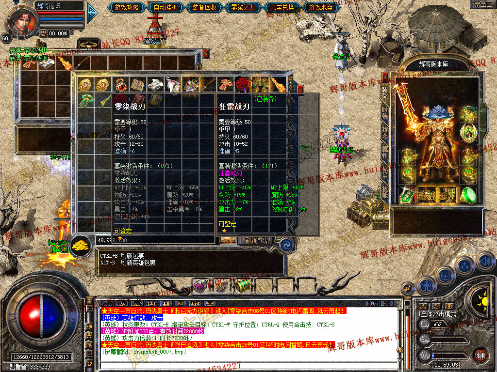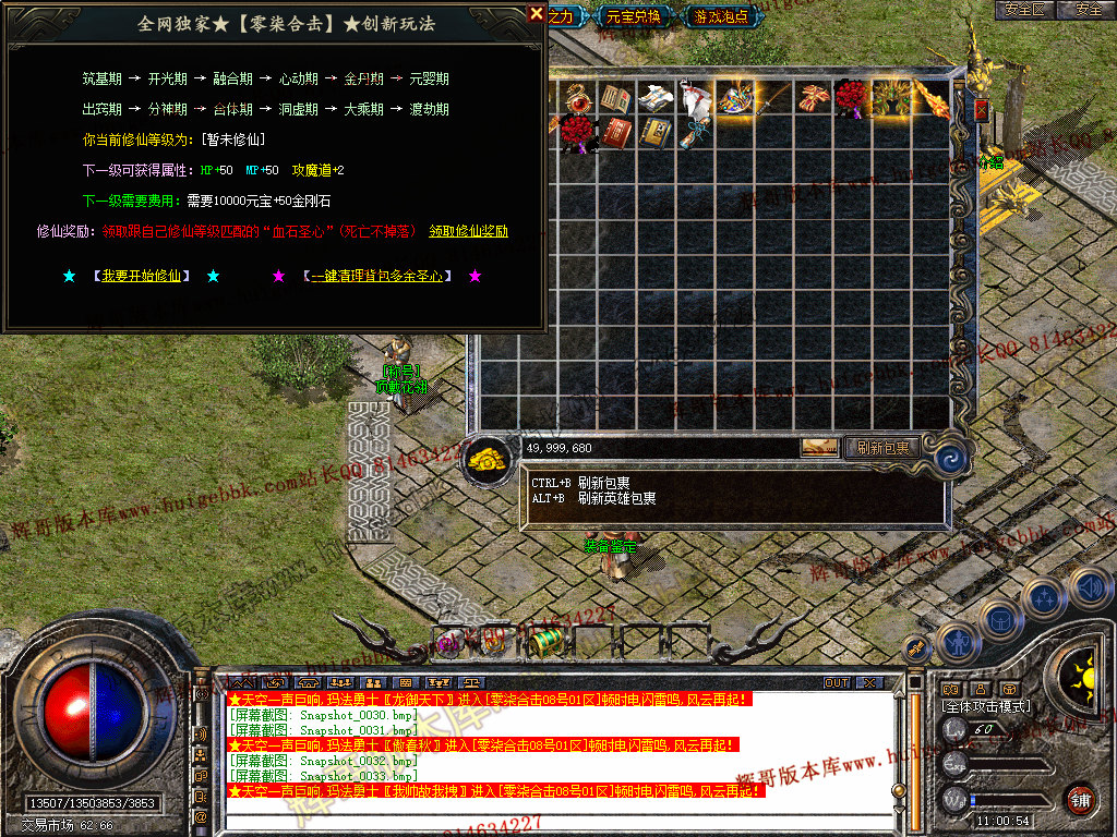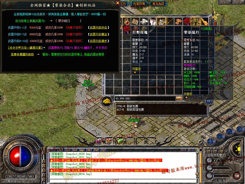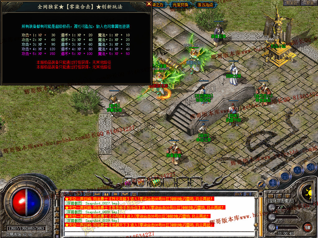 零柒合击告知:游戏内无装备升级,极品装备全部靠游戏打怪爆出.最高极品+5.可以属性转移.很保值