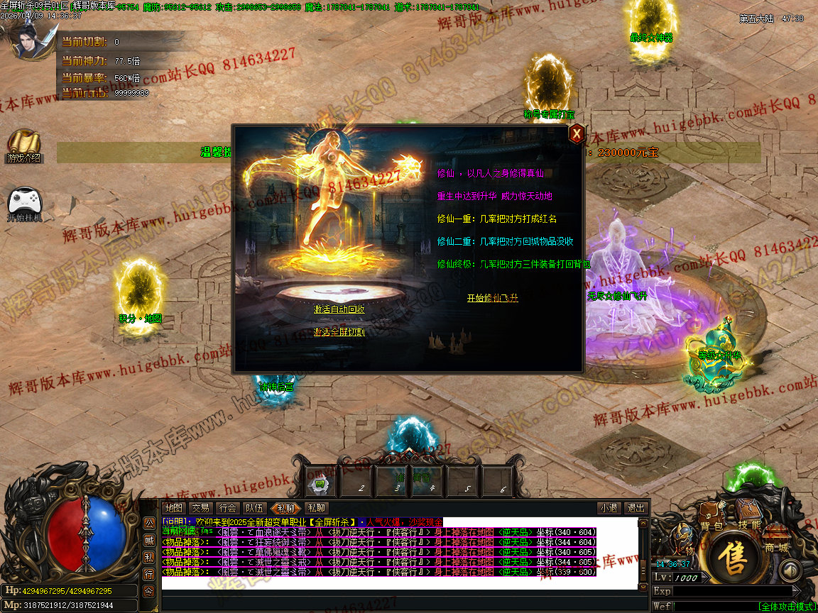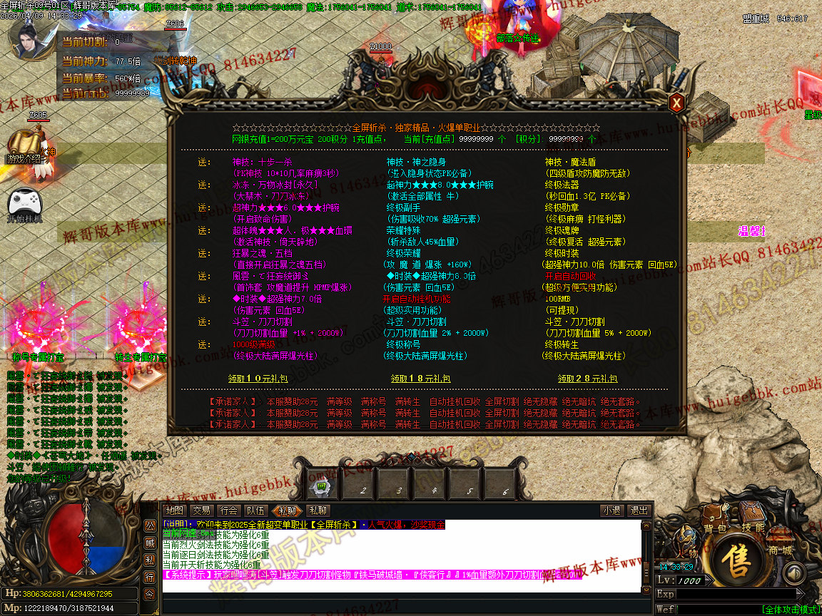 [⒈散人玩法]> <快速进服,多打限时,参加活动,累计积分领取回馈,10阶以上都会掉落终极,脸好完爆一切