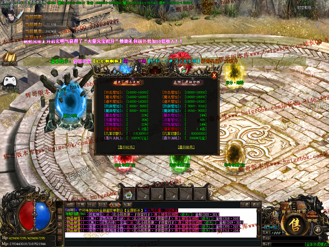 [特别说明⒊]> <所有加爆率的地图NPC都会标注,自行查看,进地图就会刷新爆率.>