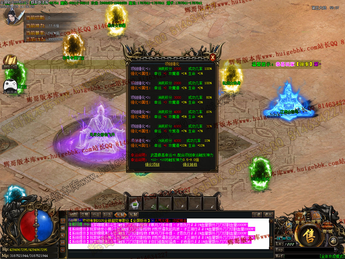 [特别说明⒈]> <本服所有神力属性和爆率属性在哪里加都写的非常清楚,><窗口左上角><即可看到.鼠标放上去自行查看.!
