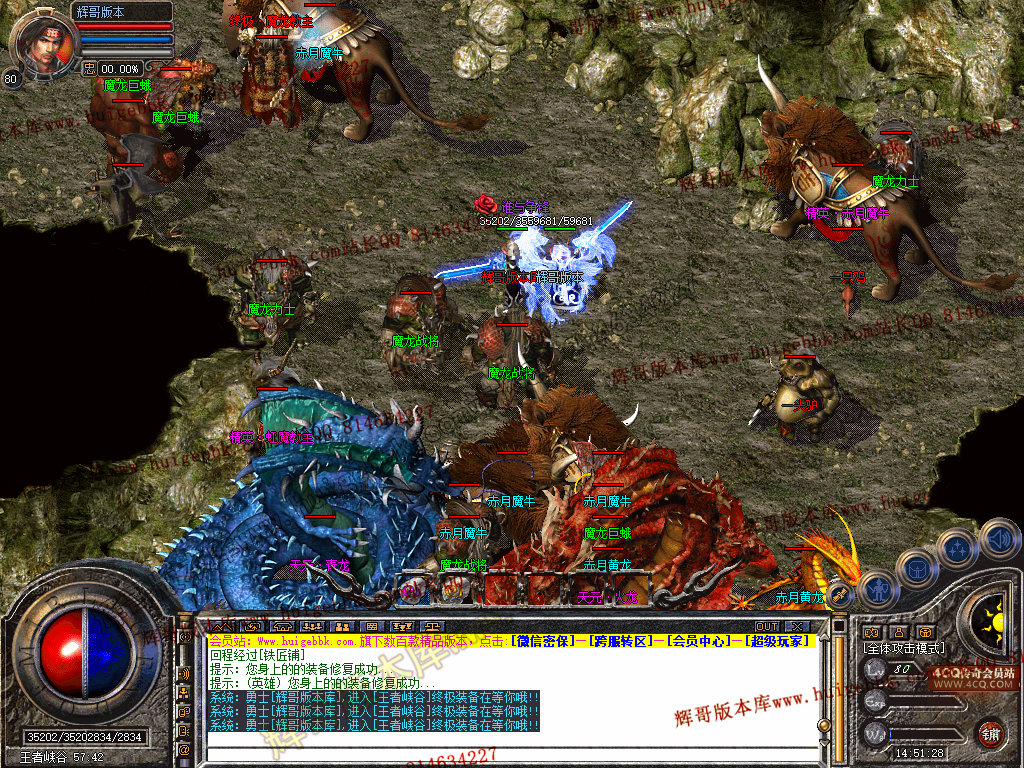 杀猫逐鹿出新村 斩妖除魔入盟重 近观绿涛汇碧海 远眺青山有苍松