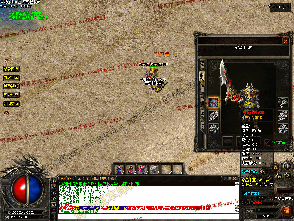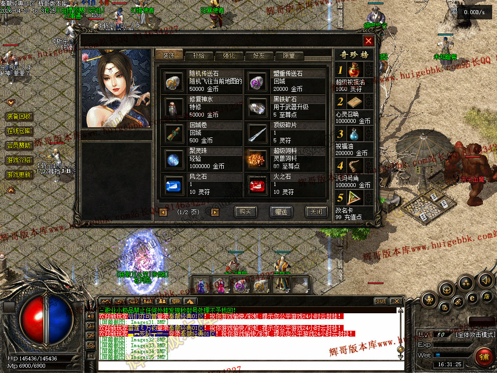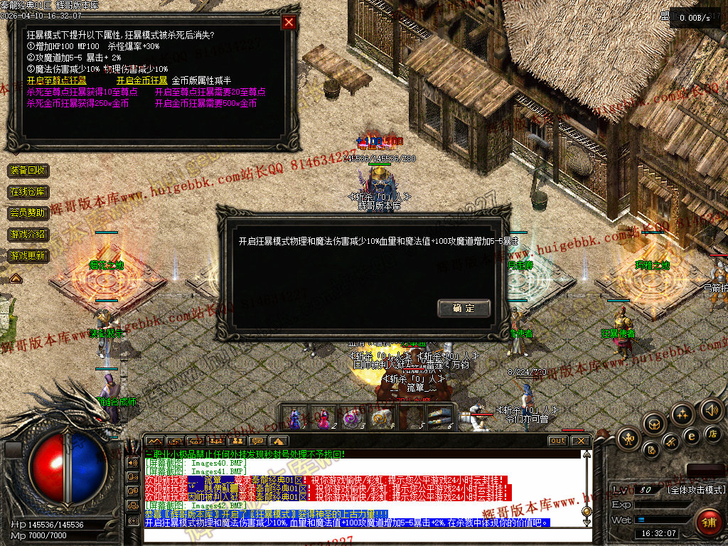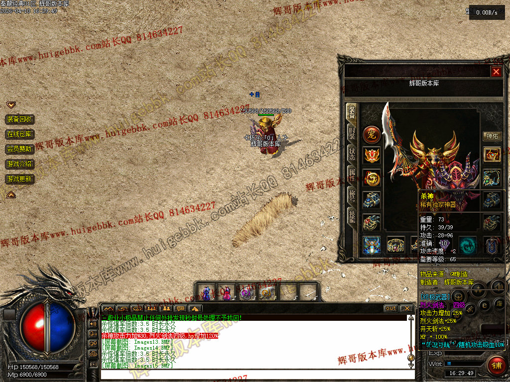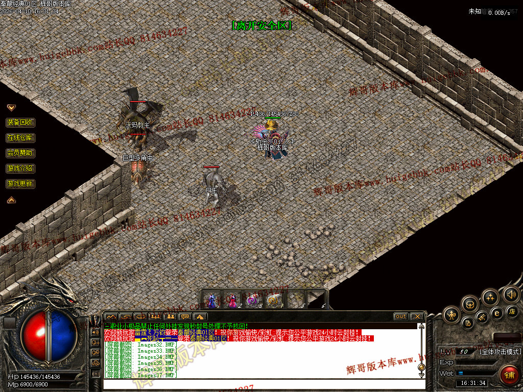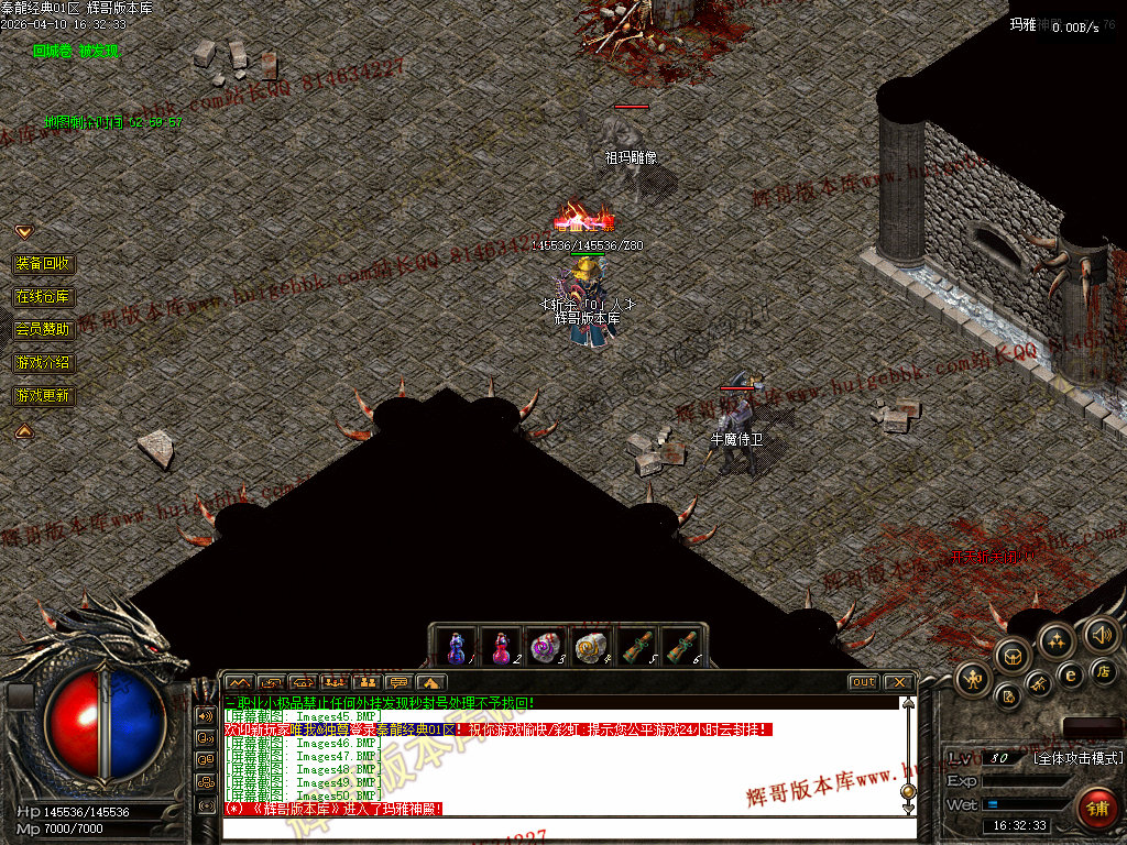 战士:加强技能,半月技能对怪物伤害200%,加强攻杀,刺杀,烈火,刺杀无视防御.无视魔法盾。