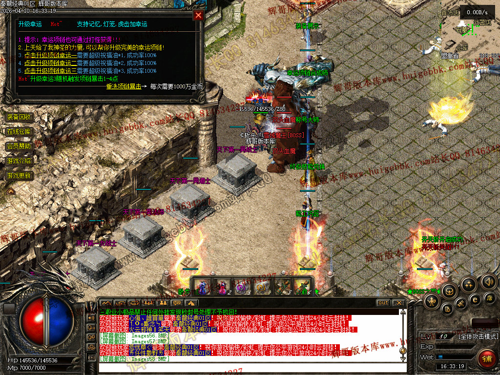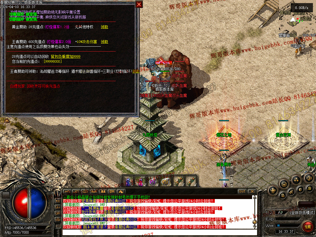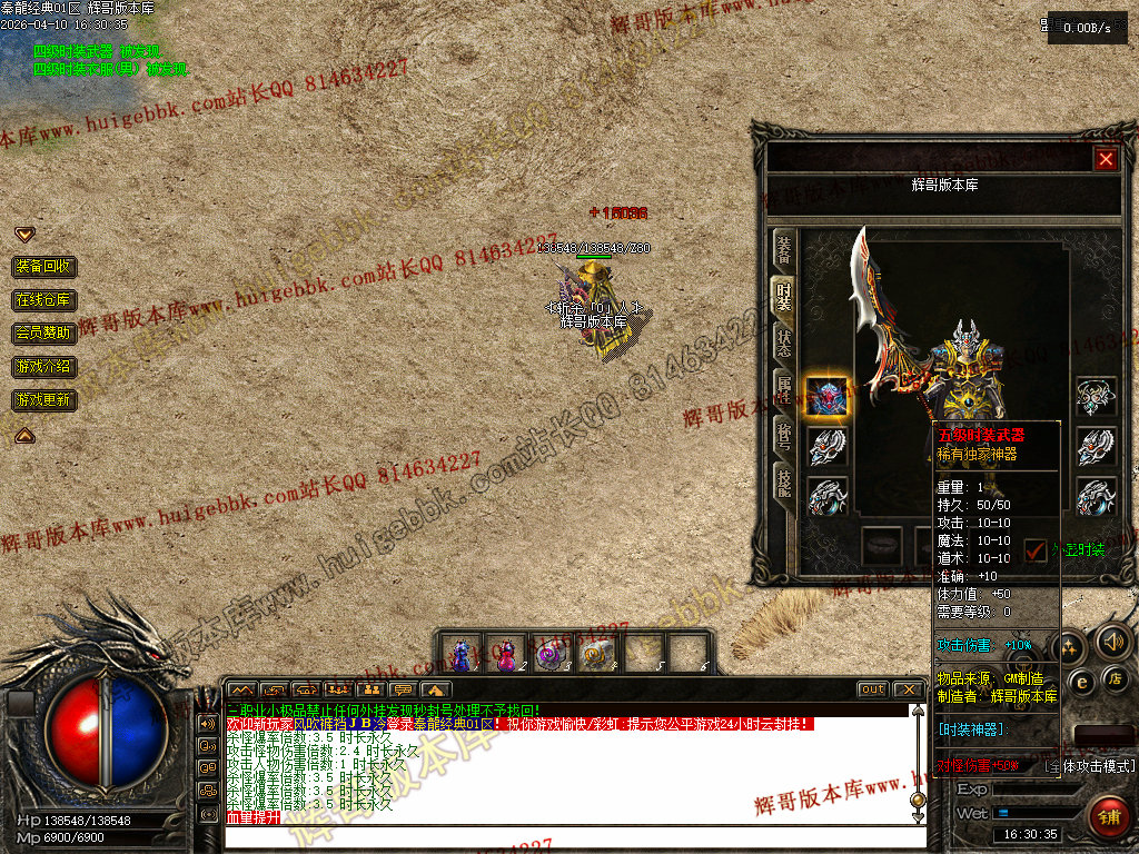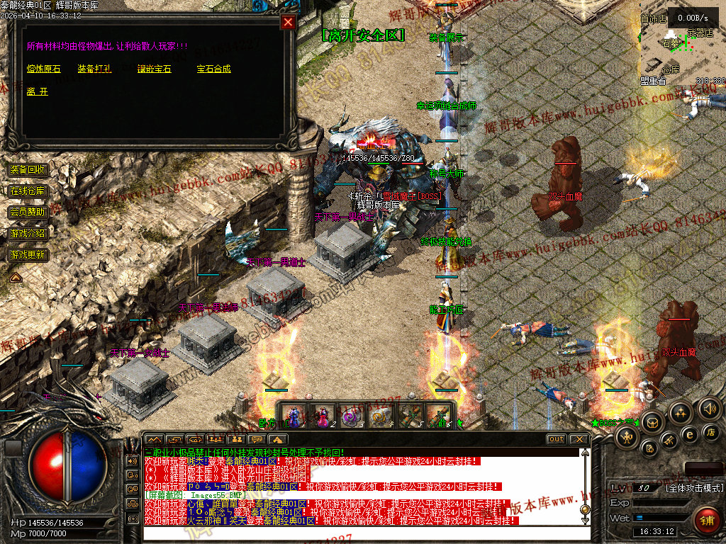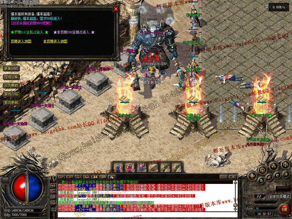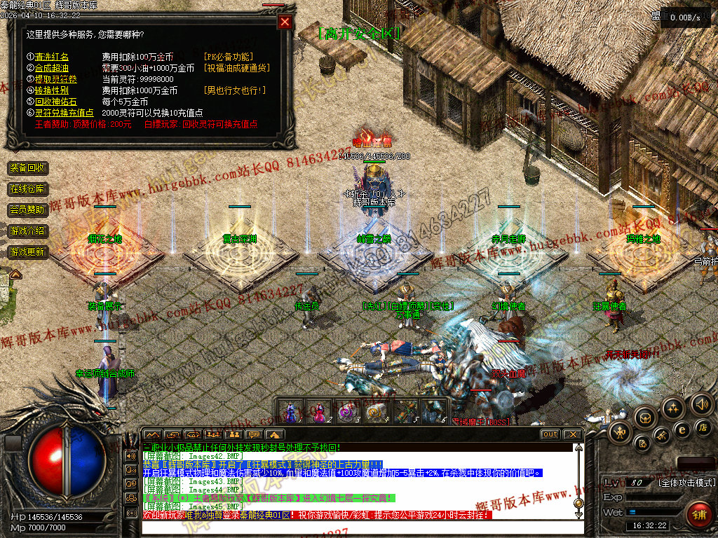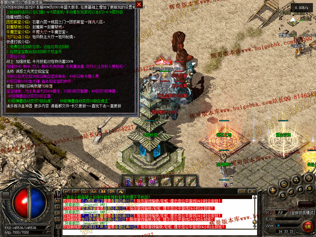 欢迎来到本游戏,本服90%仿2001年盛大版本,在原基础上增加了更耐玩的设置和玩法!