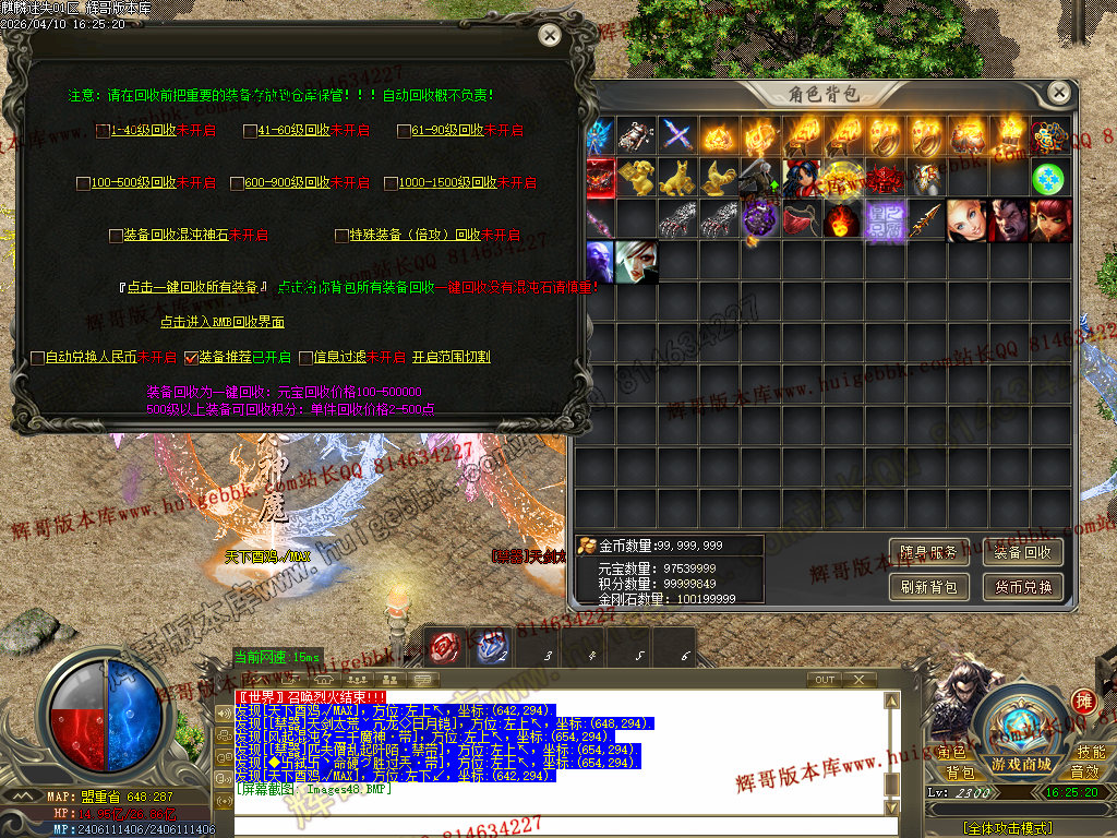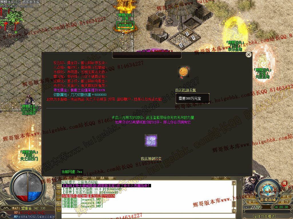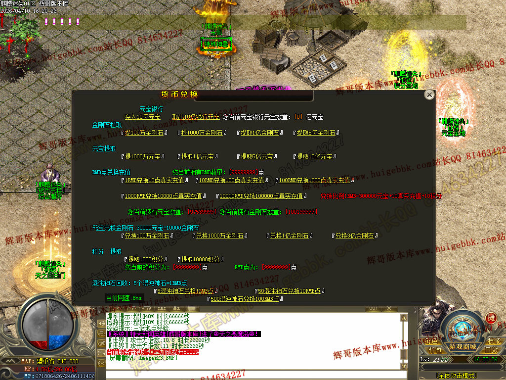 3、后期打高级装备回收混沌神石。5个混沌神石=1RMB点 永久回收(高级货币兑换NPC回收,土城346.336)