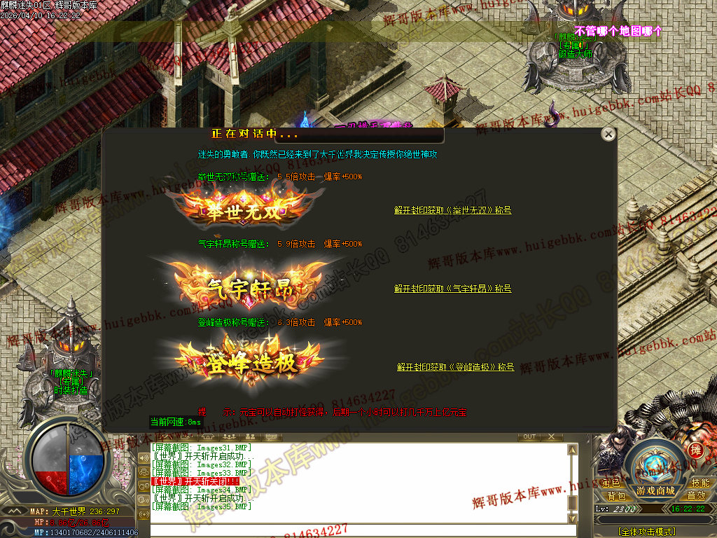 土豪随意,上线把背包神器、回馈、魂骨这些弄满,见什么充什么即可,体验火箭般的速度。