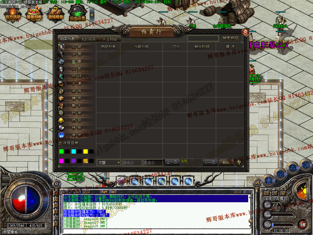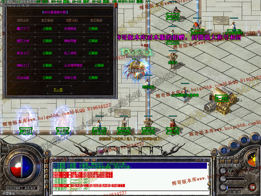 中期:散人地图、烟花之地、神秘玛雅、无间炼狱、魔幻之门可打BOSS ,打装备都可以