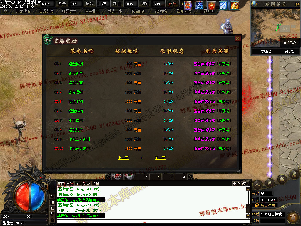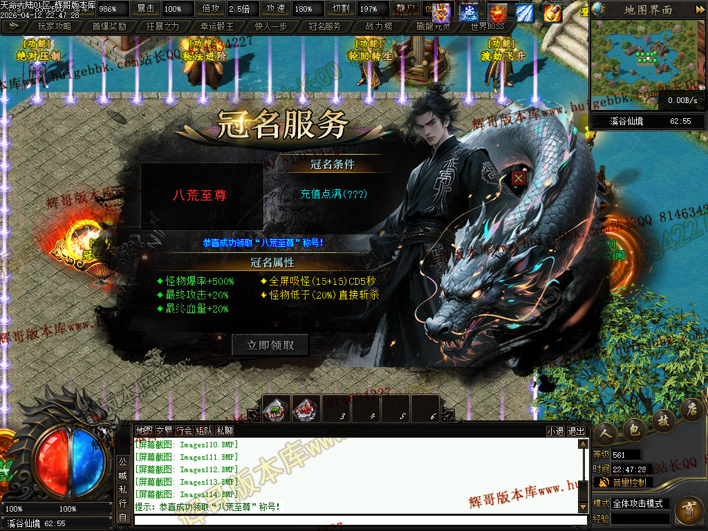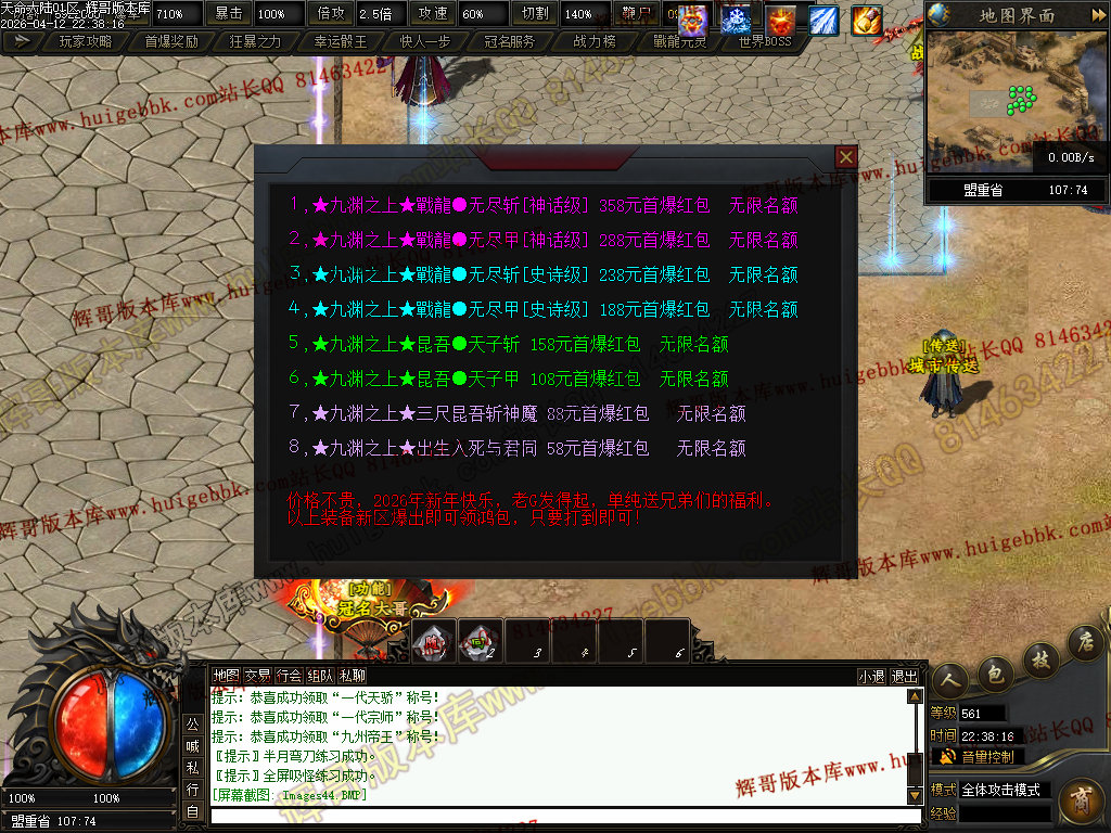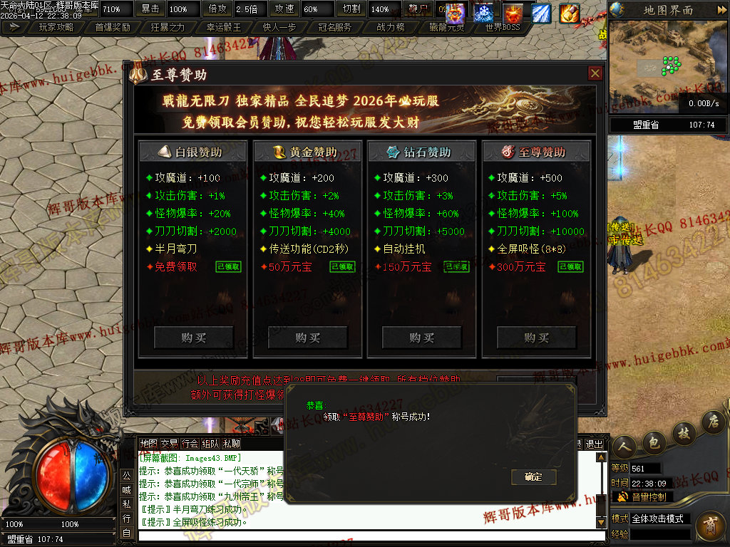 ③兑换200元元宝充值→→→→增加超高爆率,以及怪物连爆几率+15%
