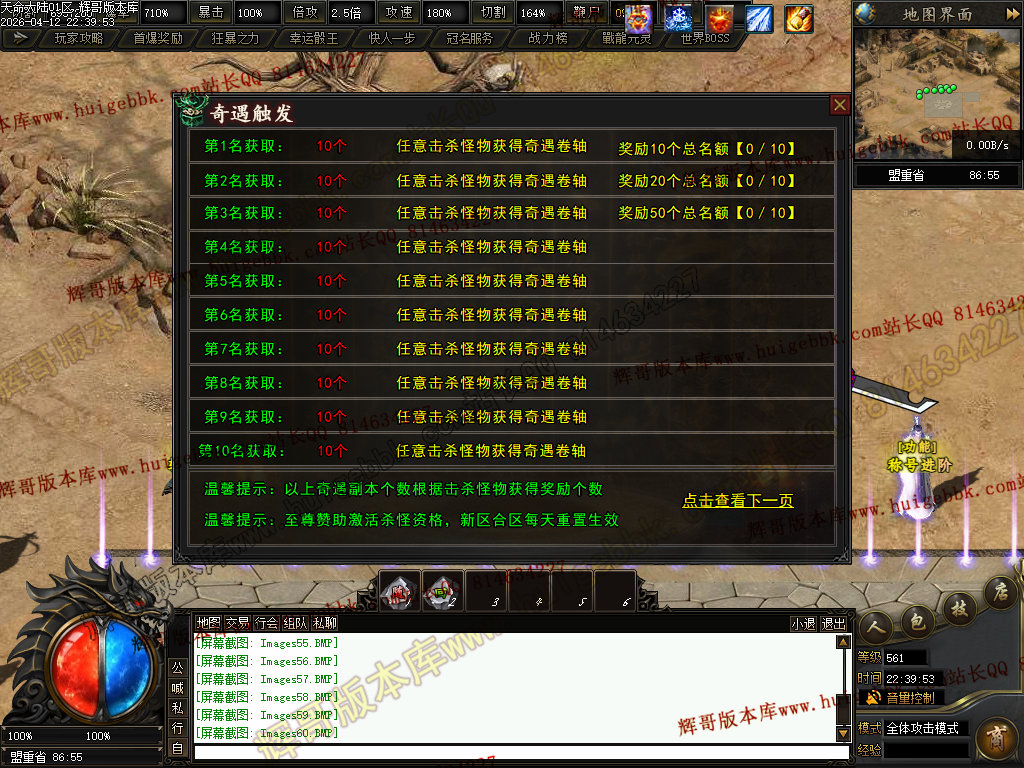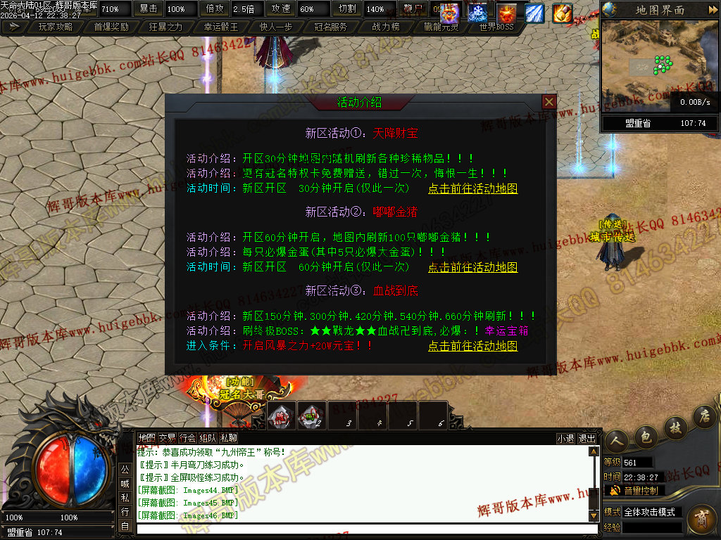 ③:前往新手地图,击杀怪物可快速获得起步装备,本服前期首爆名额99名,足够玩家获取启动资金