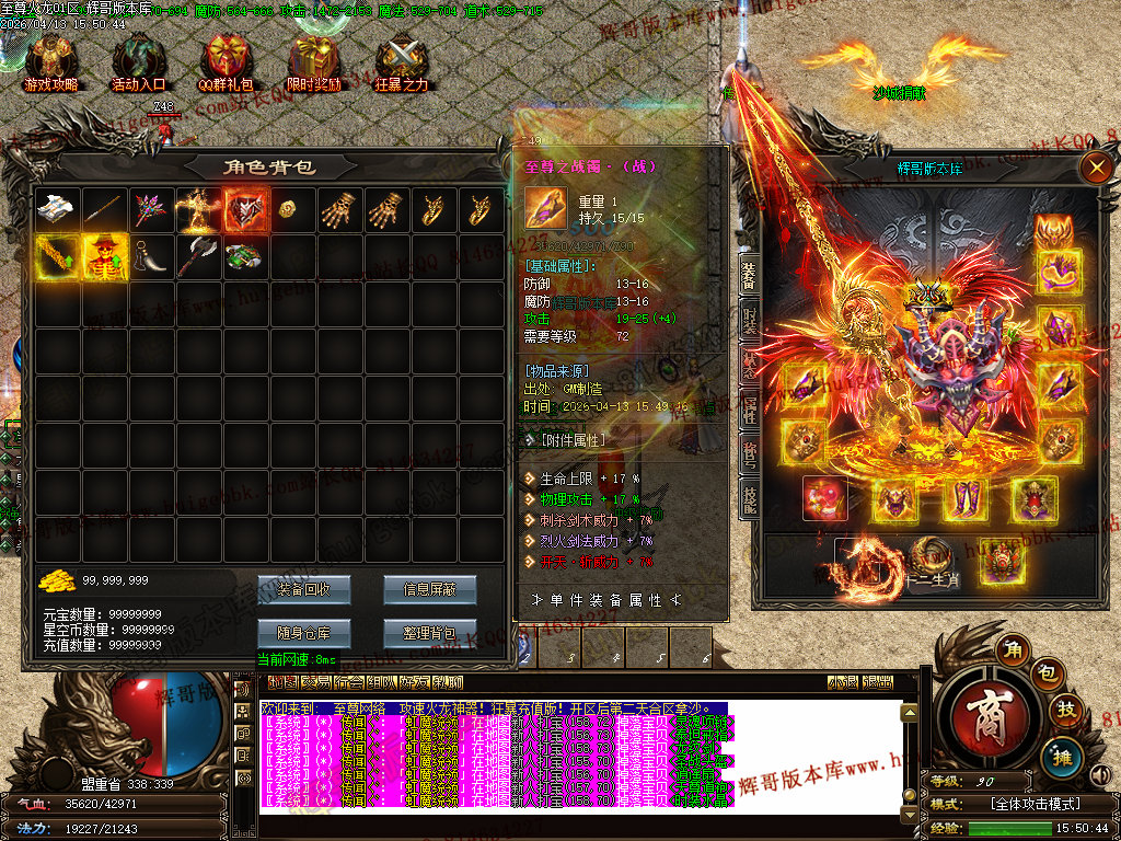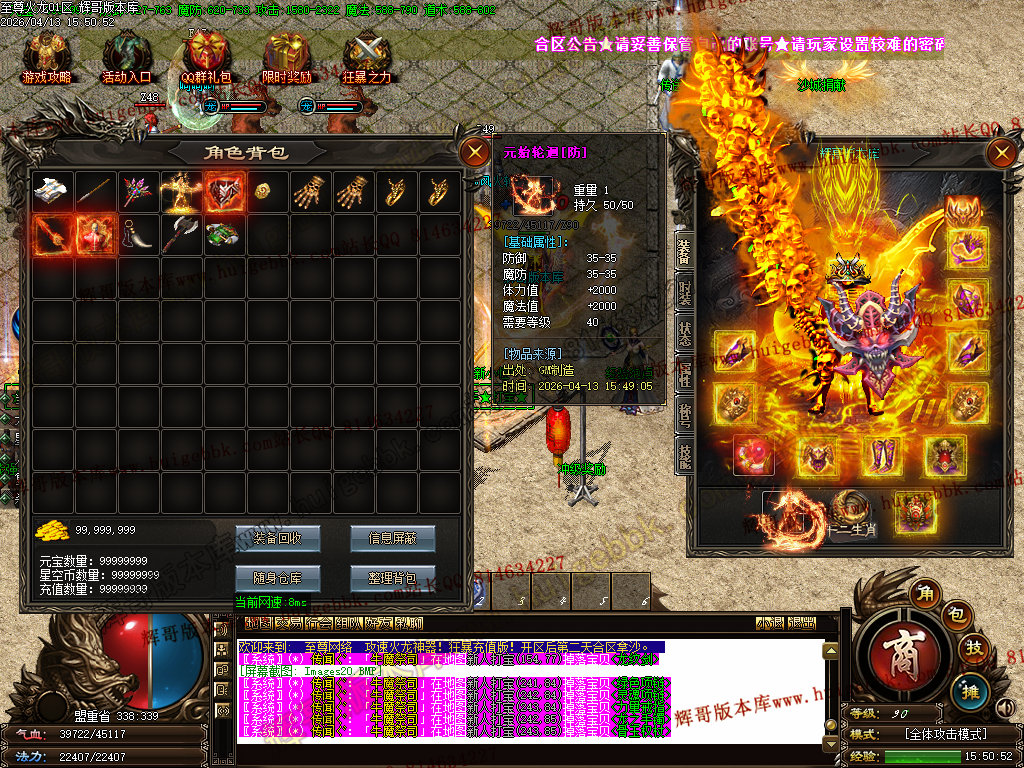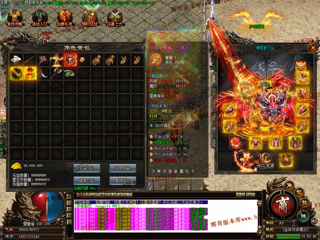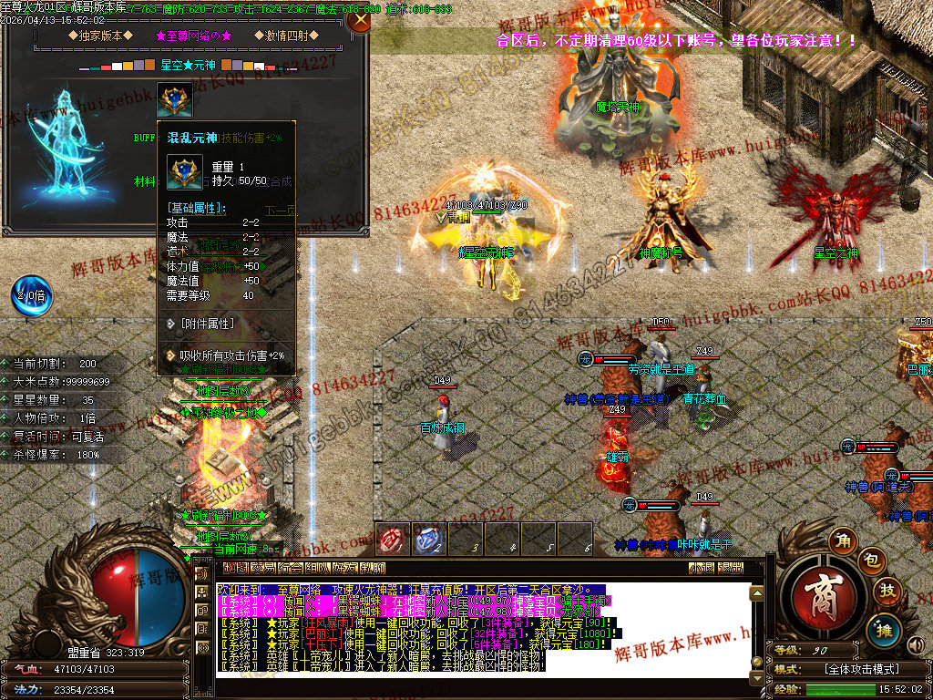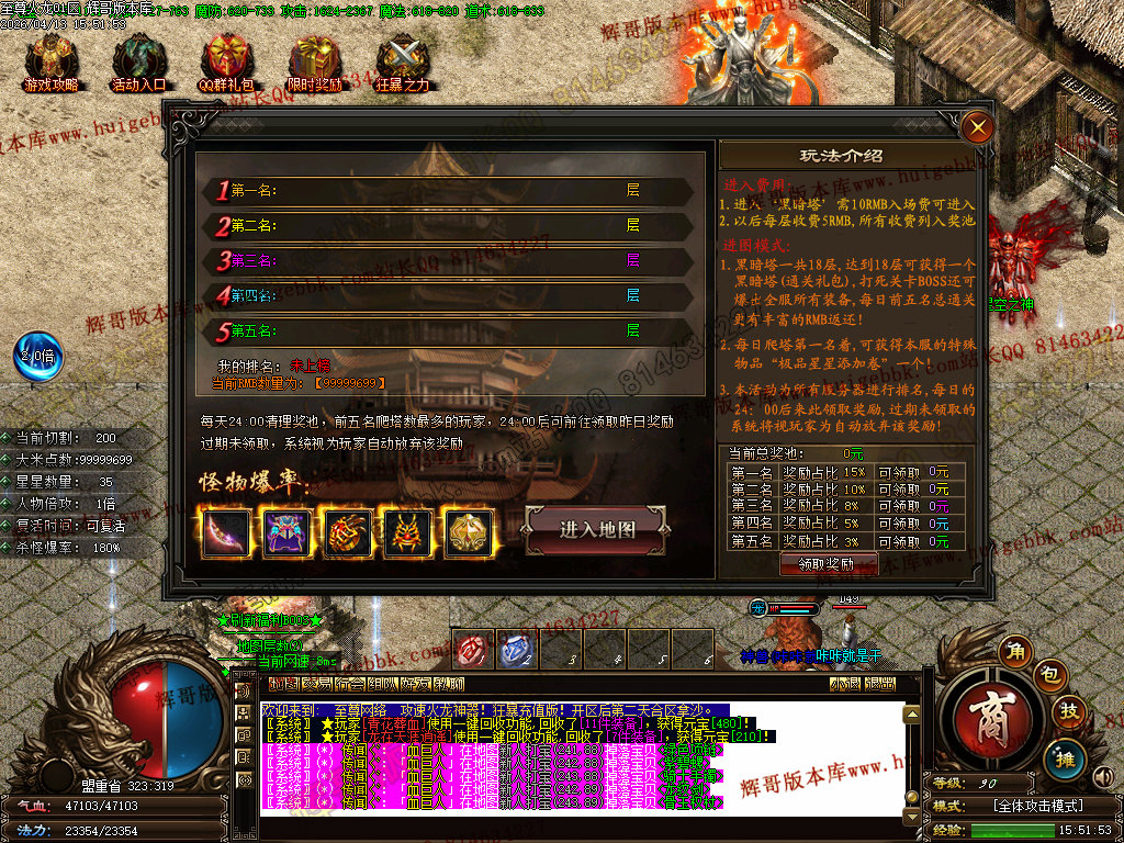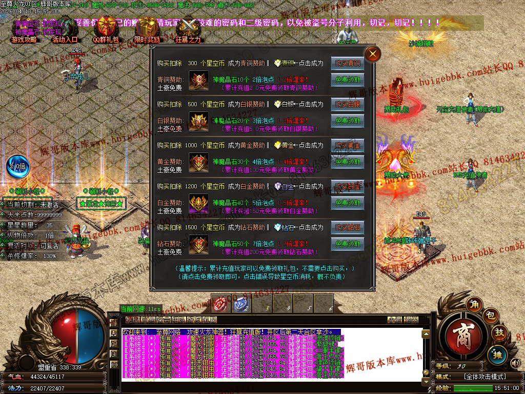 版本介绍:装备排行:王者→火龙→龙吟→毁灭→天命→星空→终极(爆率全开)