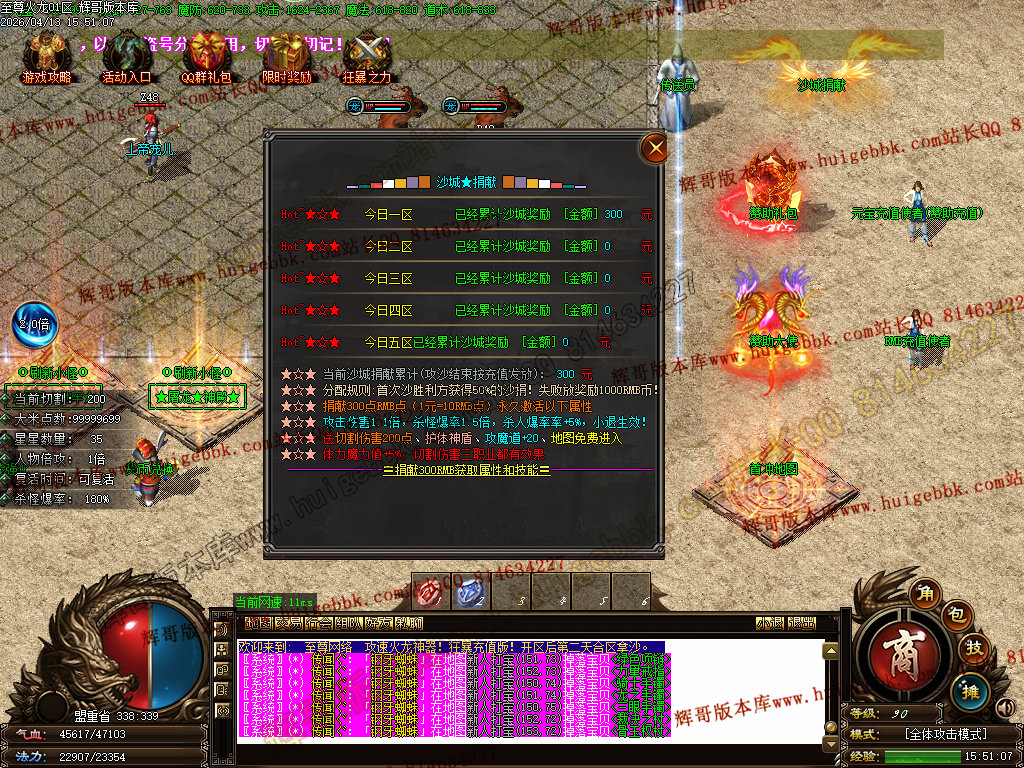 版本介绍:新区第二天,下午14:00合区,晚上八点全体玩家拿沙,奖励丰富