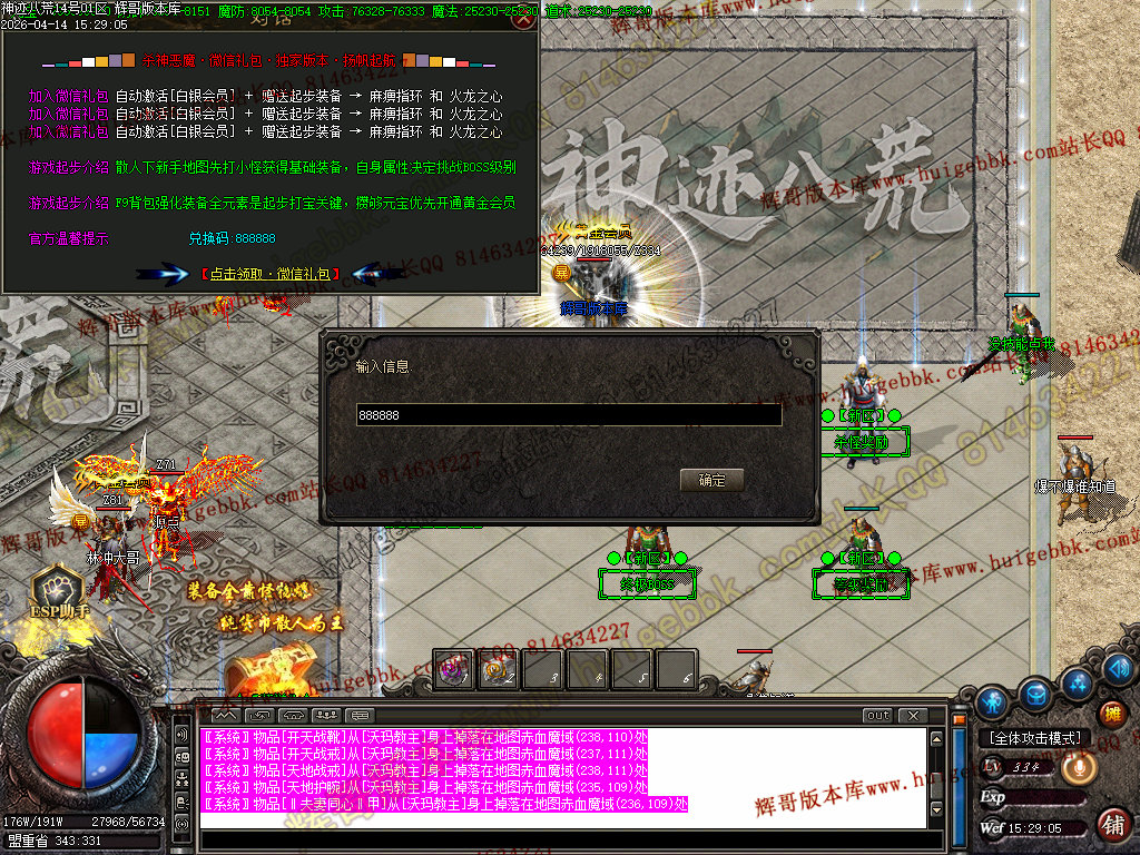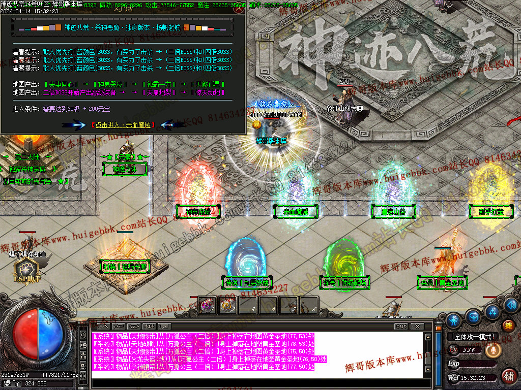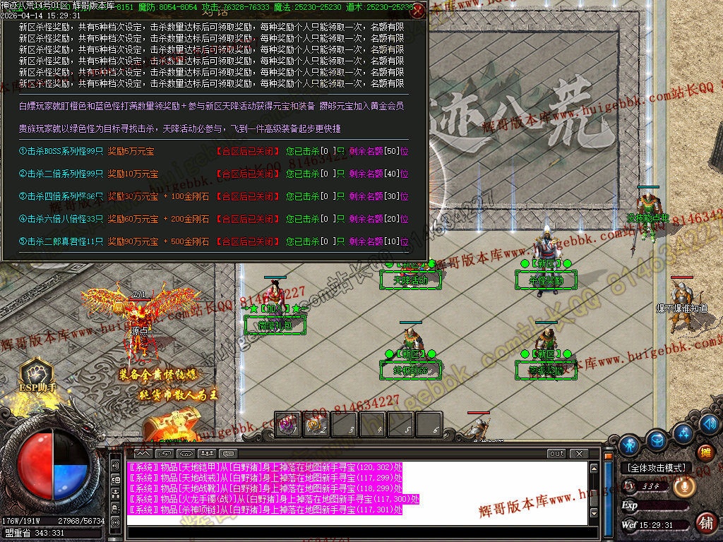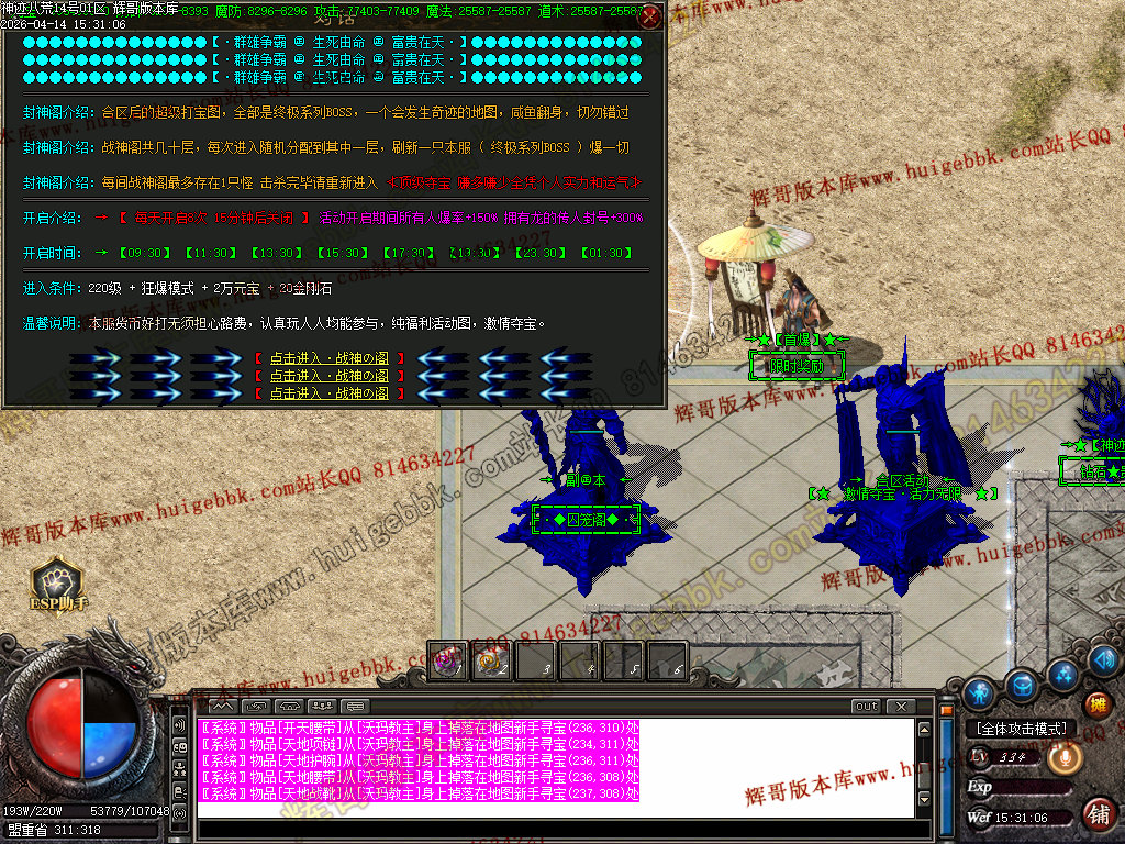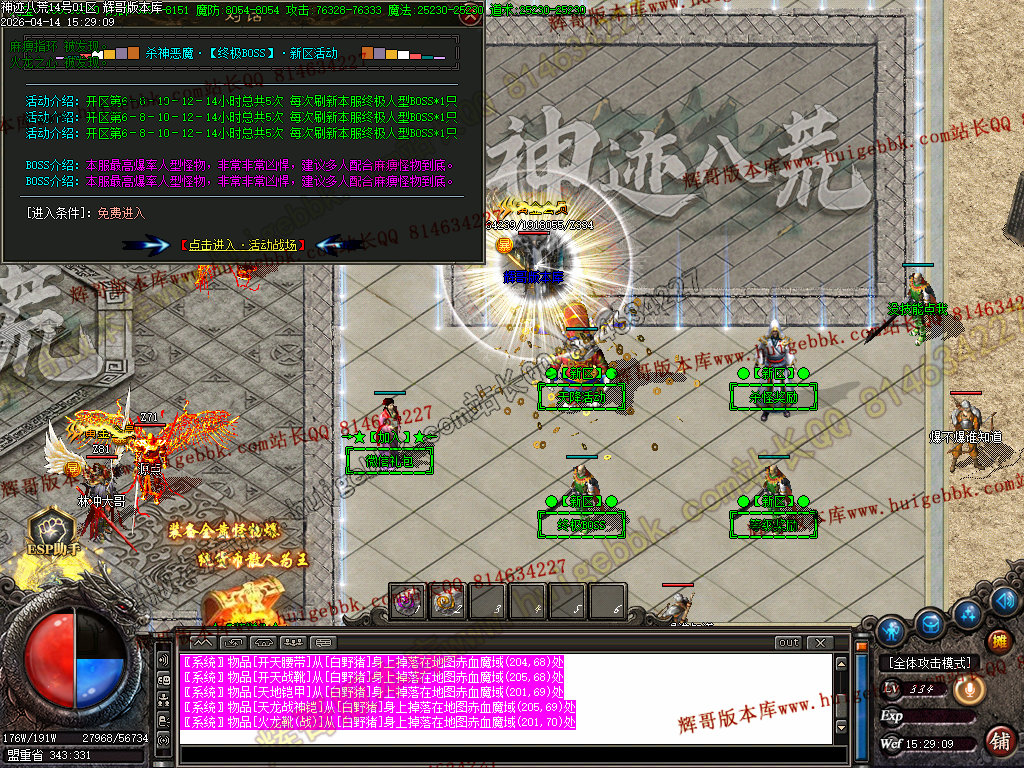 全区活动:(天降财宝)(BOSS争夺)(终极BOSS)