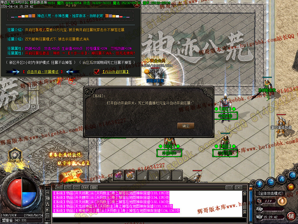 【自动狂暴】(高几率保护回城,很难被杀死,数量QM脚本最上面控制)