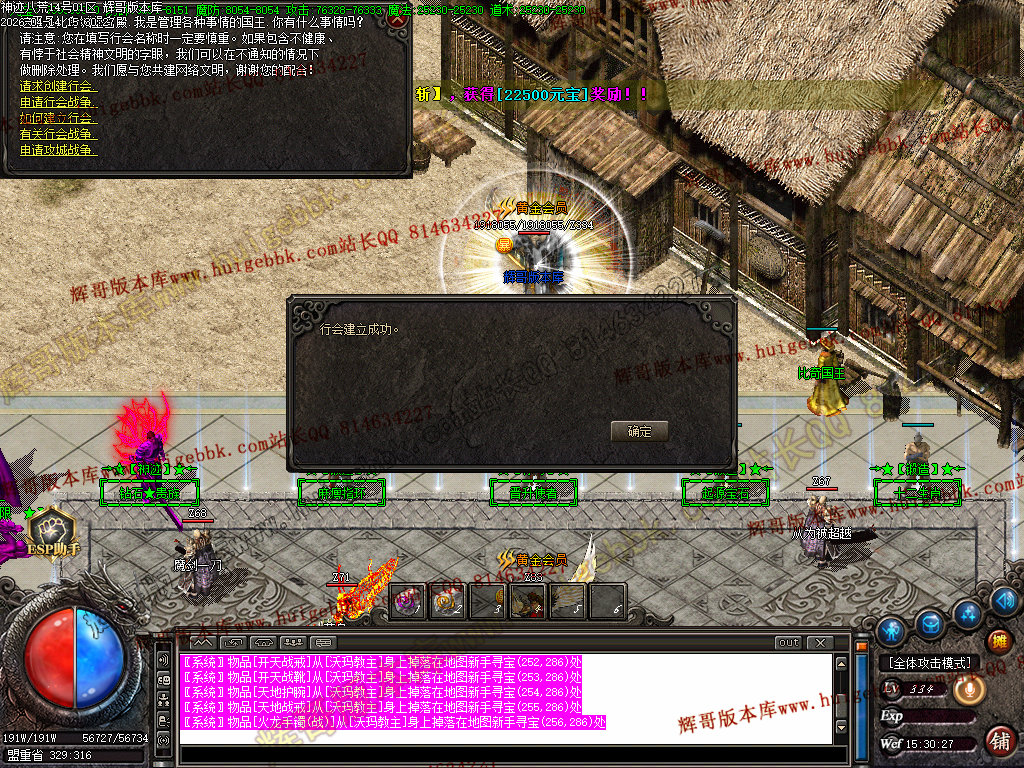 【自动创建行会】(目前默认2-5个,可控制数量或行会名)