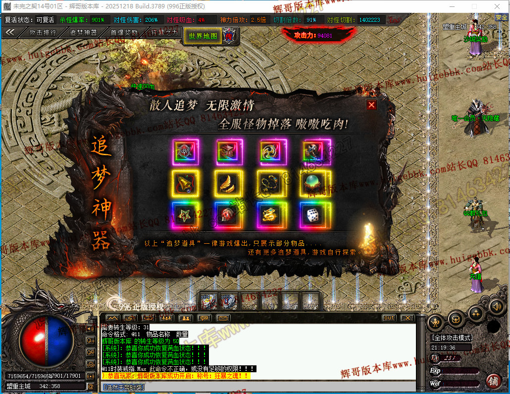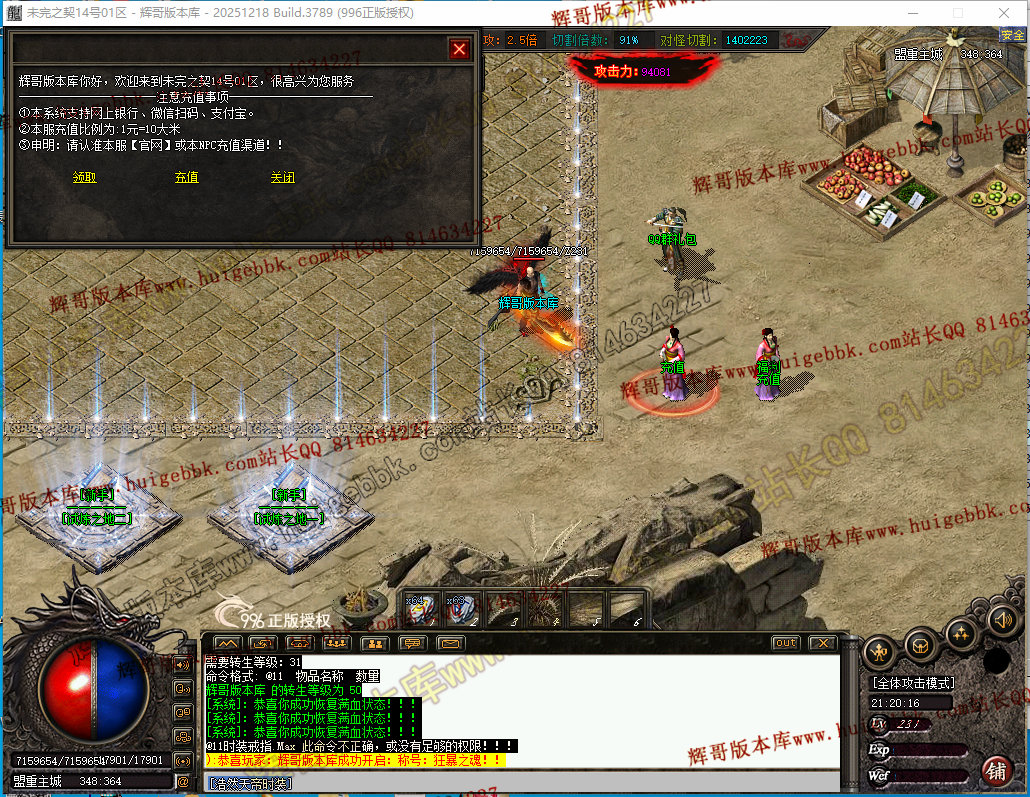 如果发现影响开区的大问题,可联系站长进行免费修复,细节问题自己处理不负责细节问题,