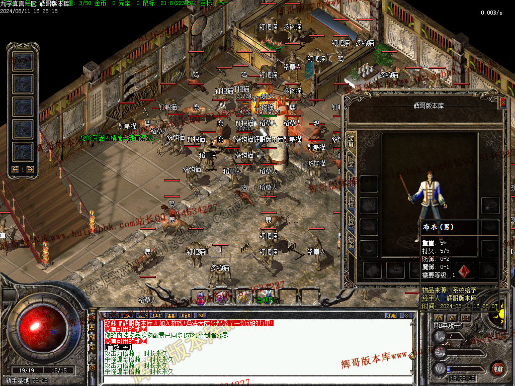 3、地图传送NPC,从初级地图开始打怪,累计材料资源,回收垃圾装备获得货币