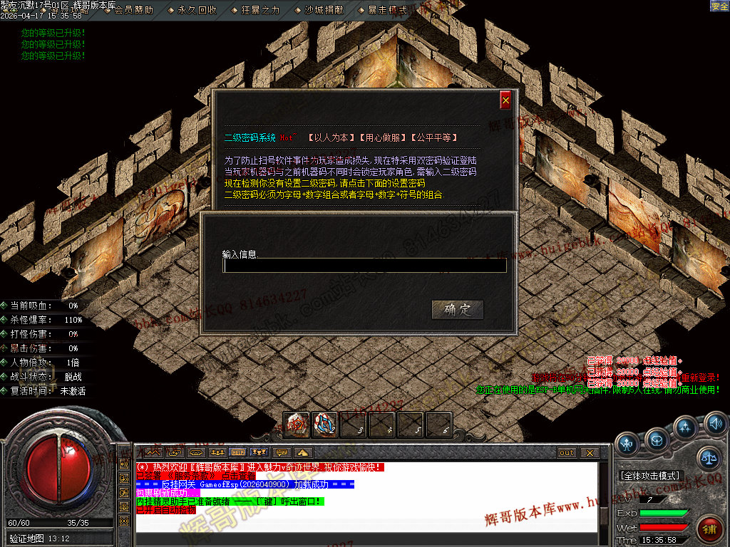 如果发现影响开区的大问题,可联系站长进行免费修复,细节问题自己处理不负责细节问题,