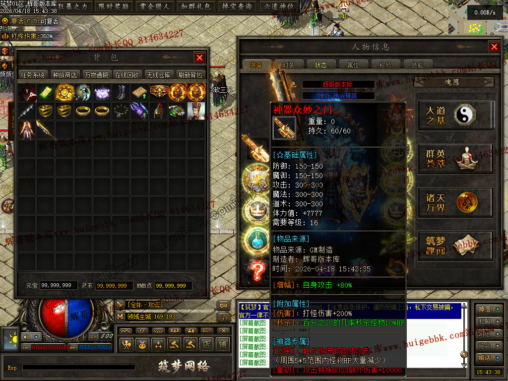 28-320独家筑梦网络特色专属神器攻速单职业端-带假人-五大陆-自动回收-翎风引擎