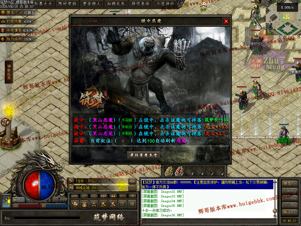 │地图随机刷新50+50只怪物,其中50只必爆10筑梦币,固定点位刷新一个BOSS,必爆《未知......》                   │