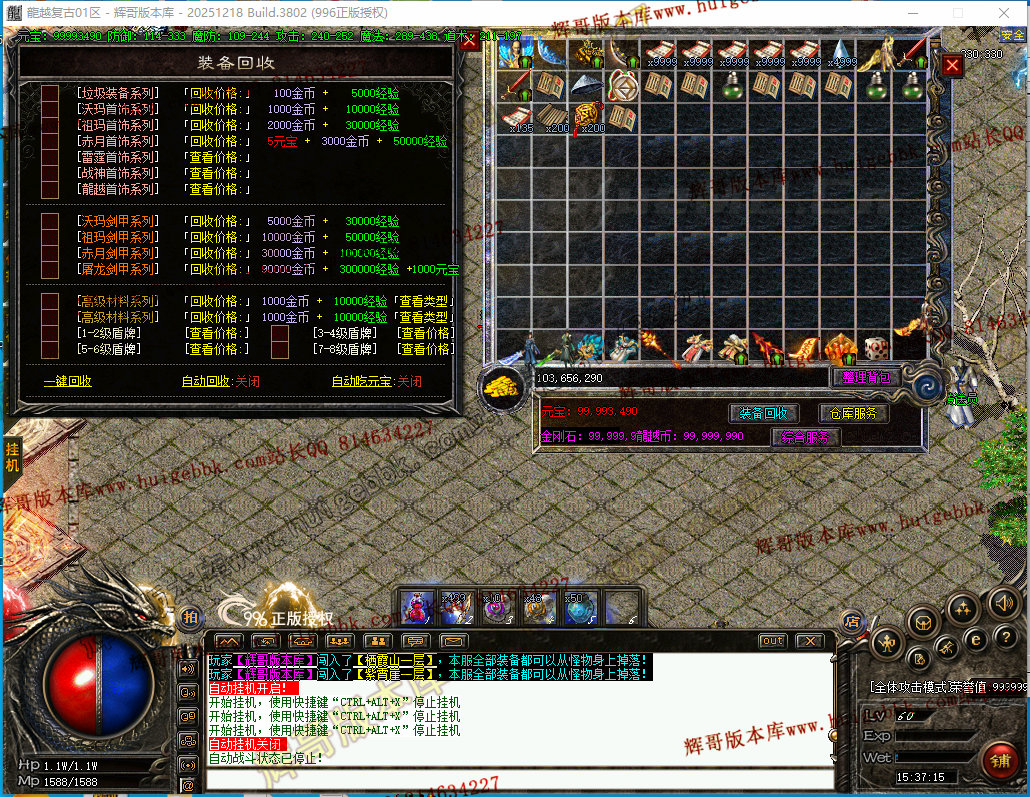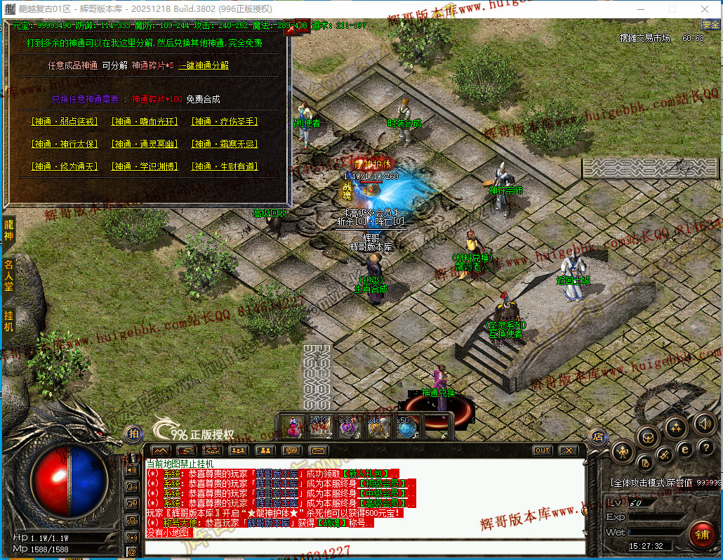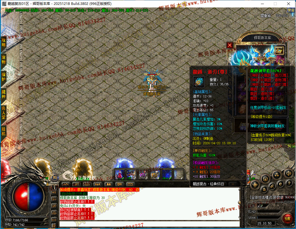 更新4:更新了一套神斩终极套.全靠打3星怪开始爆本服所有装备.完全看脸追梦