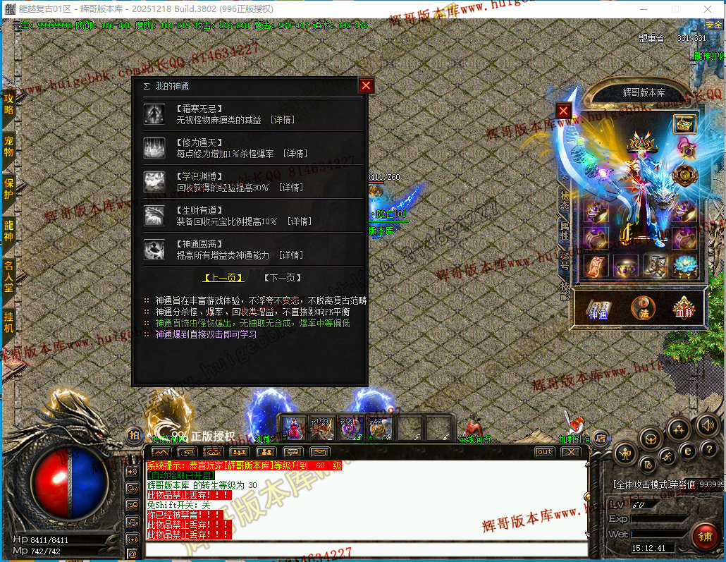 更新1:更新了神通BUFF:神通在50级魔塔跟55级神塔可爆出成品.几率是外面地图5-10倍.也可以打碎片在庄园免费兑换神通BUFF!