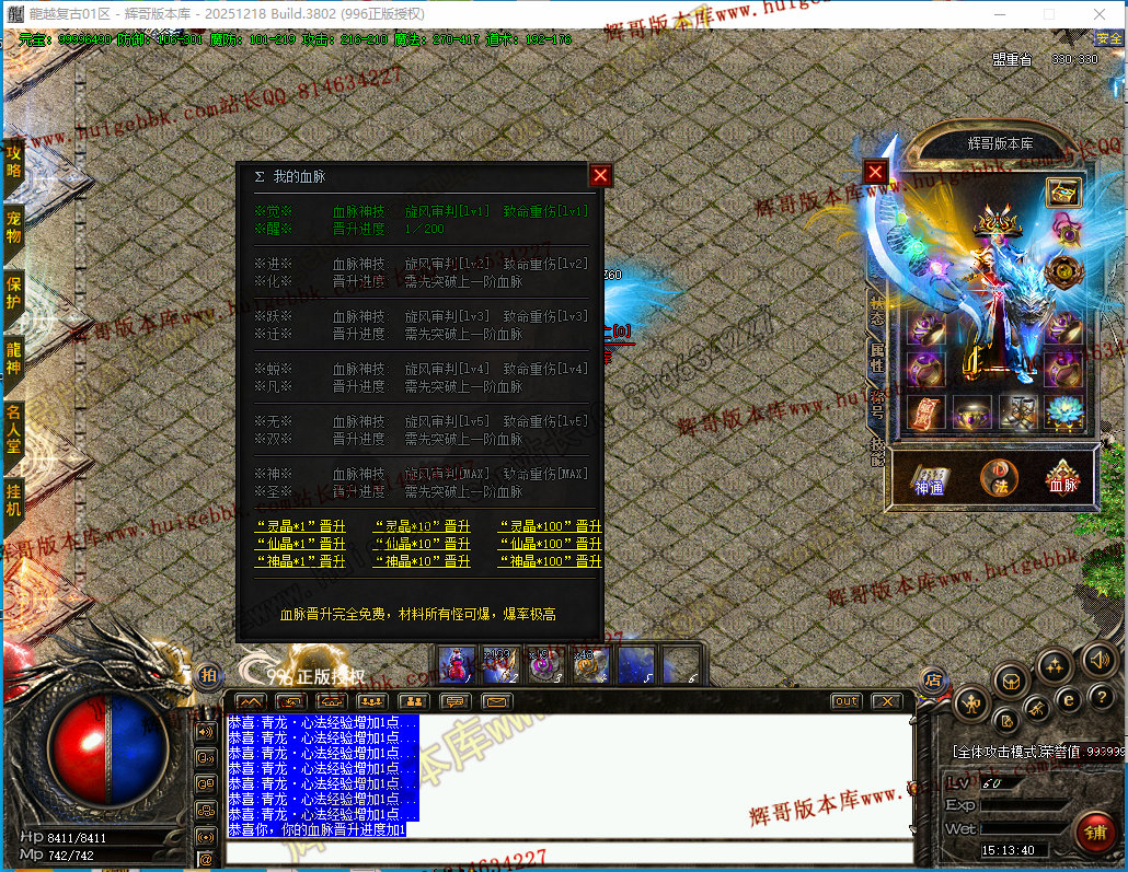 更新2: 更新了血脉BUFF:血脉靠打灵晶仙晶神晶升级.后面神炼需要神晶洗练.满神炼15星属性强大!