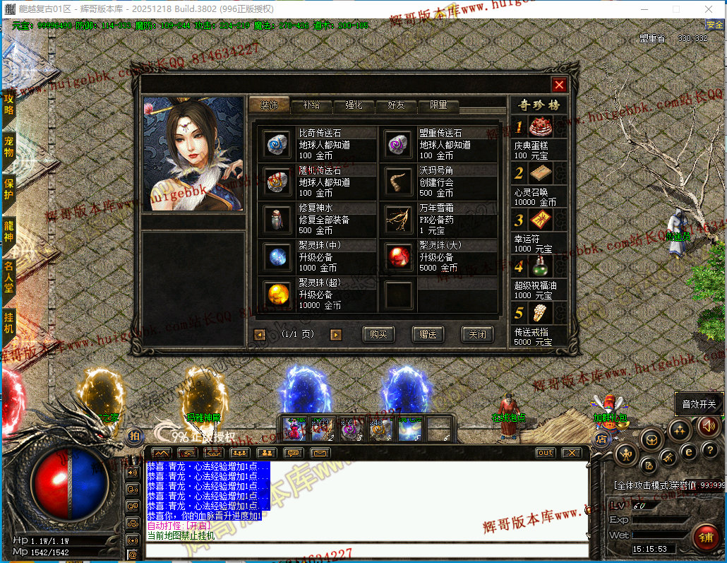 重点老板进服玩法8: 主线任务:先疯狂升等级.商铺买珠子卡珠子.等级就是王道.等级越高的地图爆率越好!