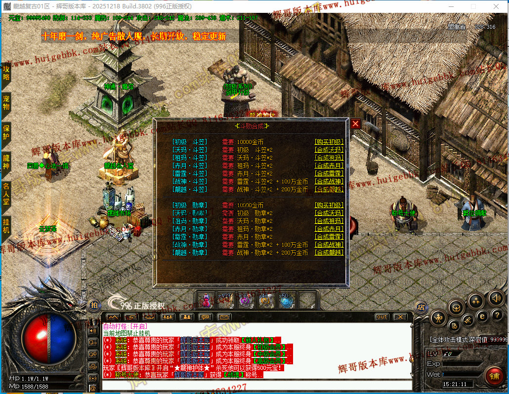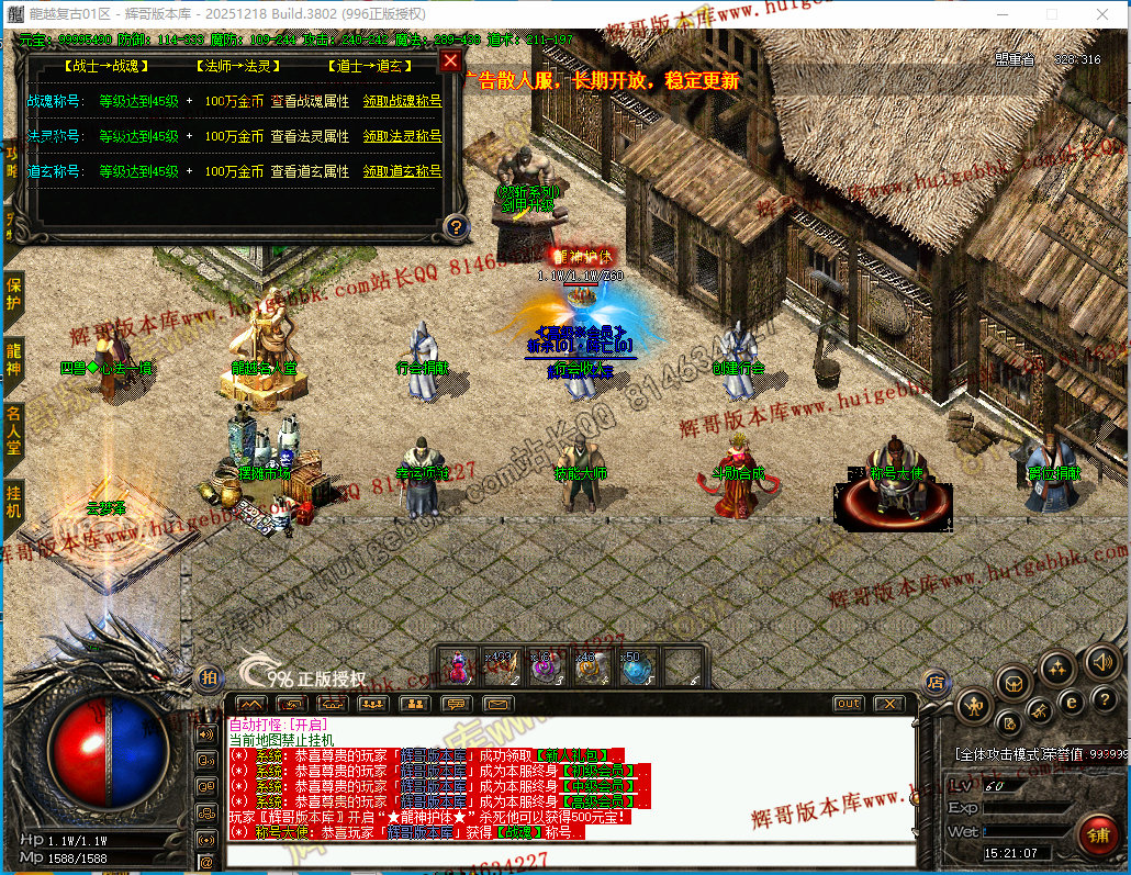 重点老板进服玩法5: 45级土城战魂称号点了.