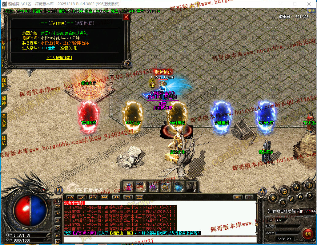 4.打宝地图.根据自身等级跟装备.每个地图都有相对应的BOSS.等级越高的地图爆率越好!