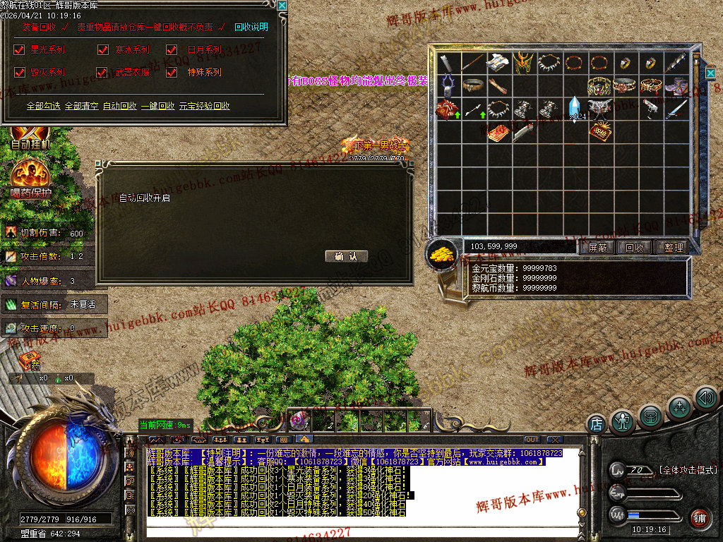 本服所有装备怪物掉出,元宝都会爆出,只要你有时间就可以终极!