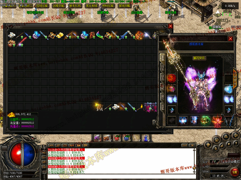 9:基因突变(命格)增加了一条究极突变 充值点达到500杀怪有几率加法宝值!(主要应对斗笠材料消耗太大的情况)