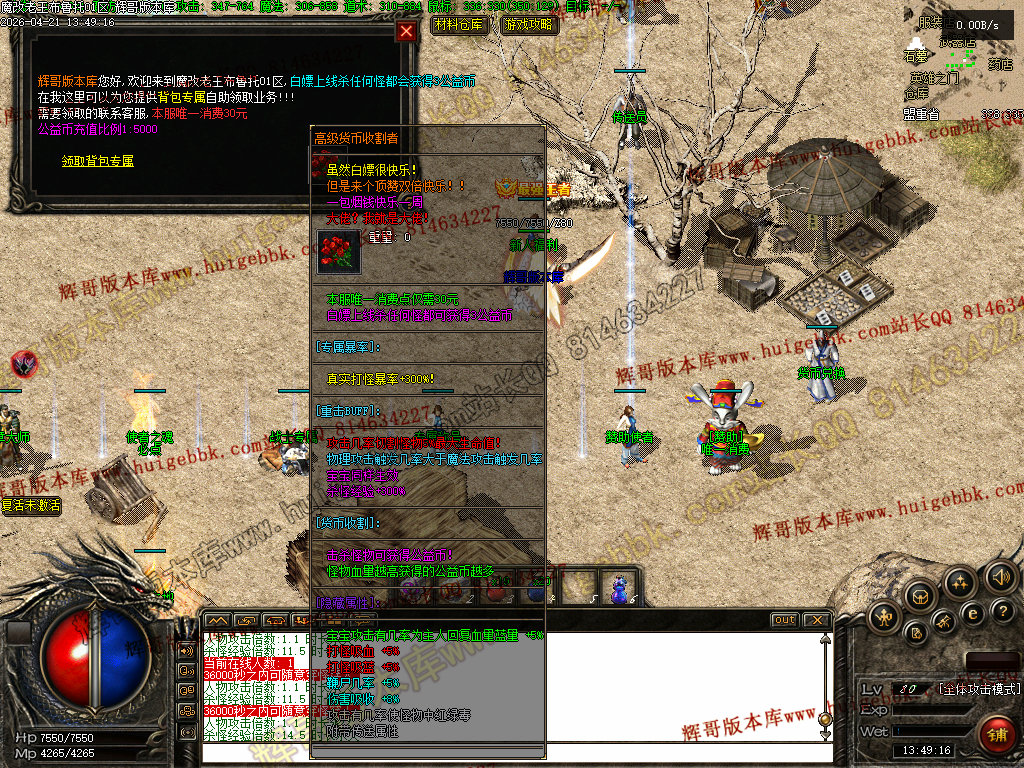 1:增加背包神器 是杀怪加货币(按血量加) 不需要的端里有替换删除背包神器文件