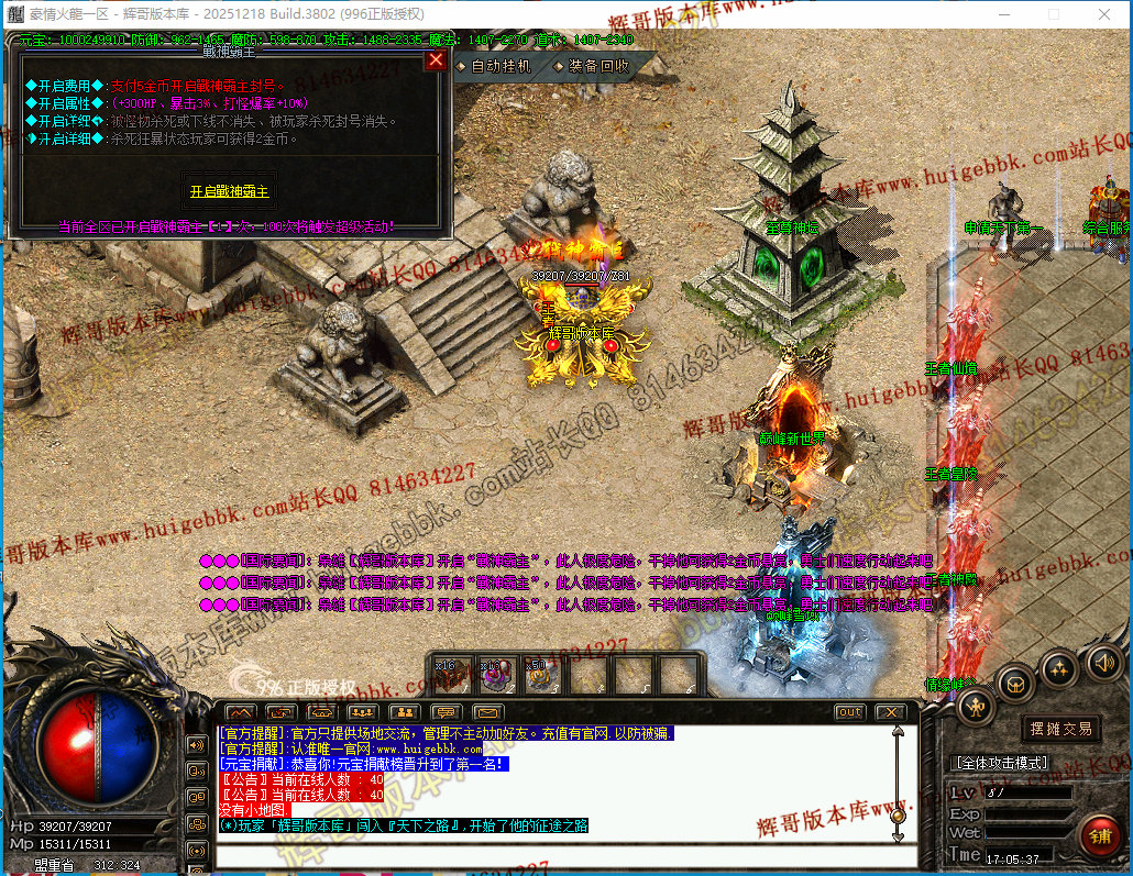 如果发现影响开区的大问题,可联系站长进行免费修复,细节问题自己处理不负责细节问题,