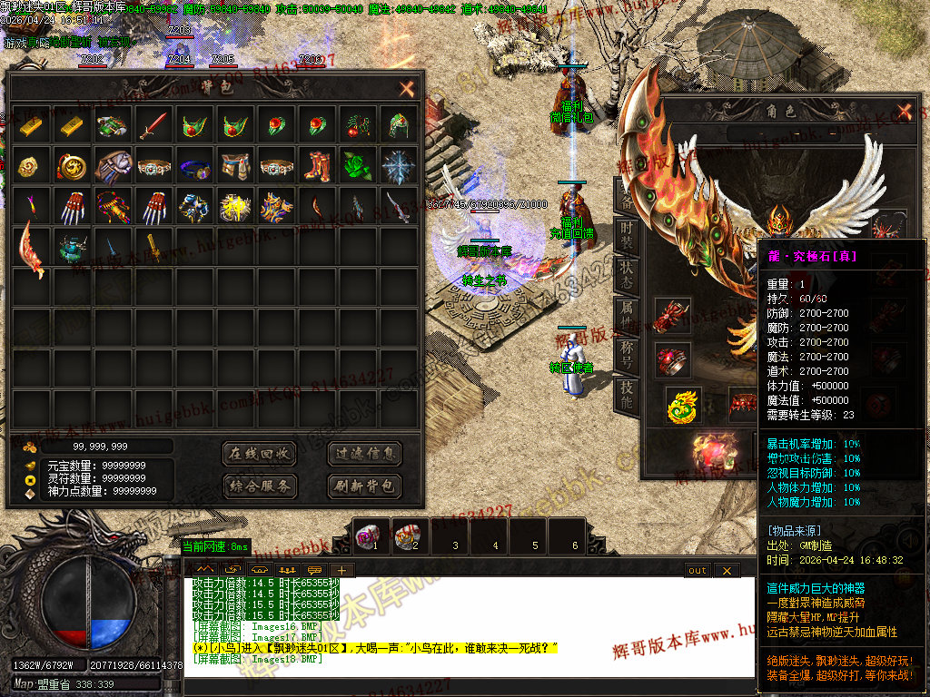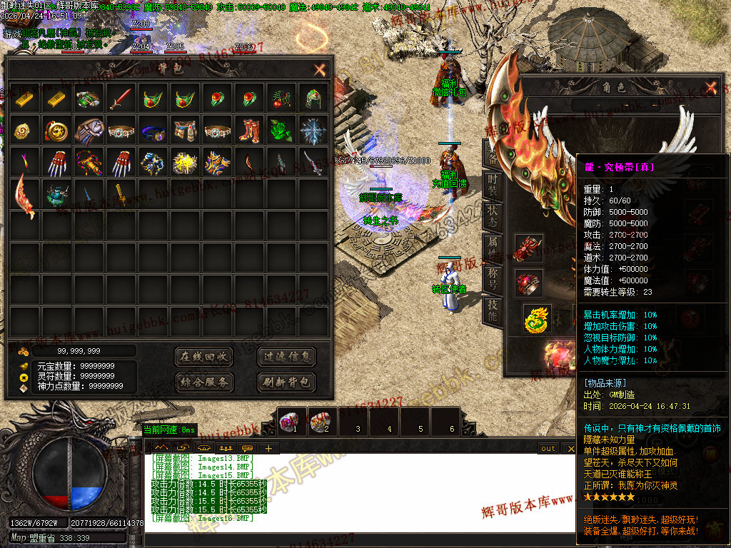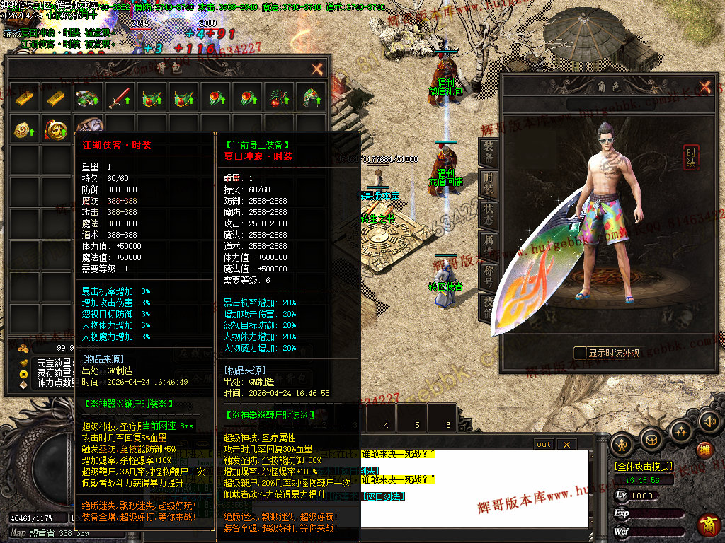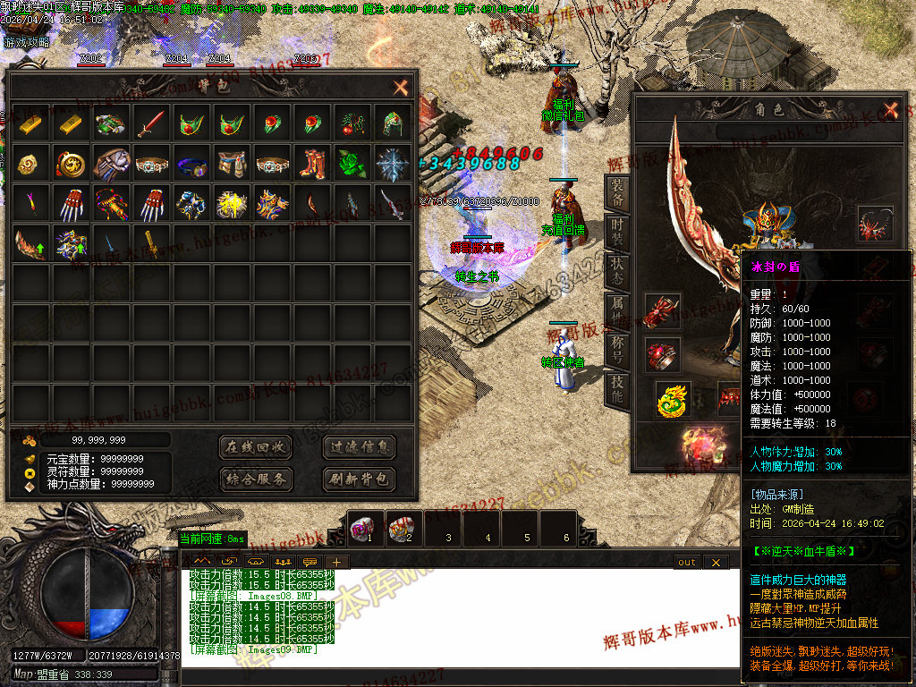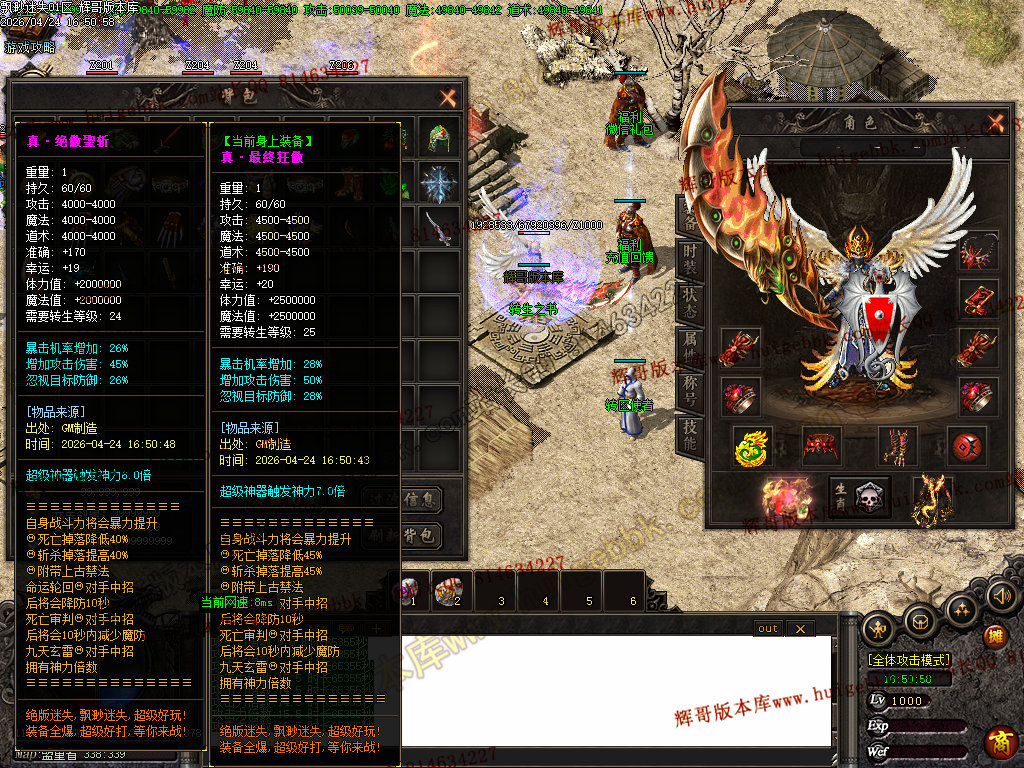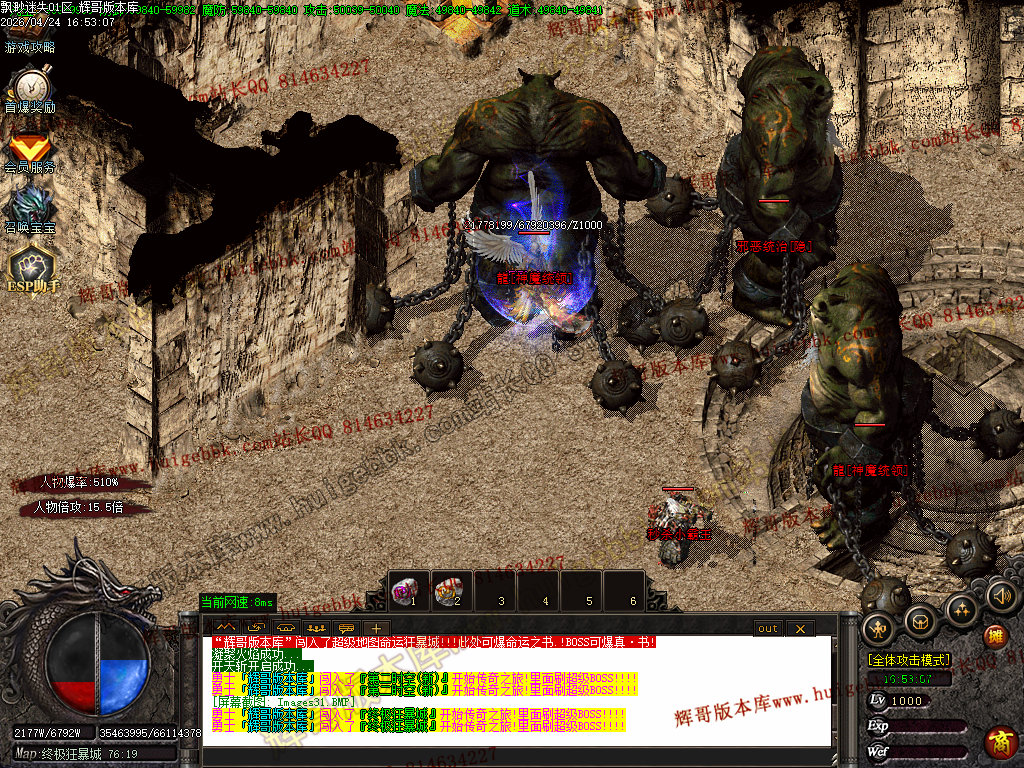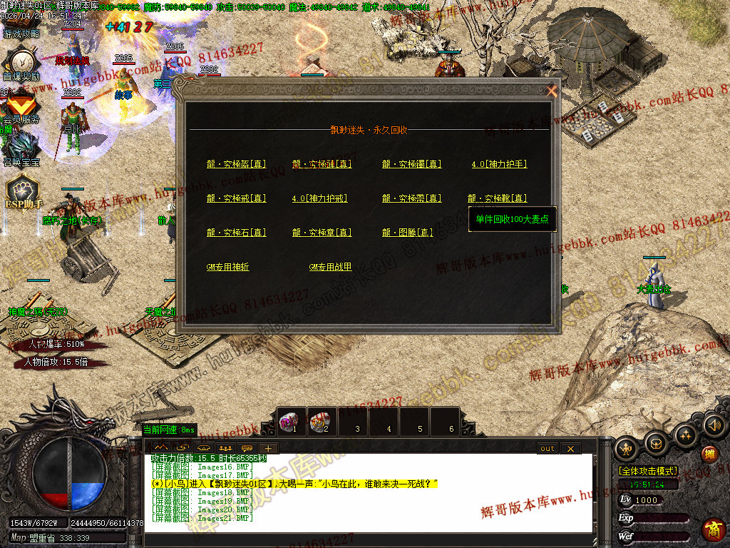 版本特色:所有地图免费进入;上干件神器,全靠BOSS爆出!