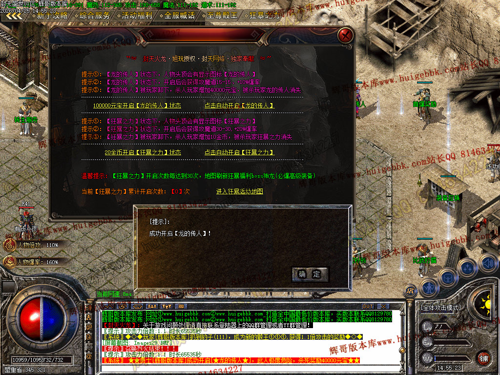等级保底:人物等级达到60级完成八转称号 - 保底爆出火龙衣服和火龙武器随机一件