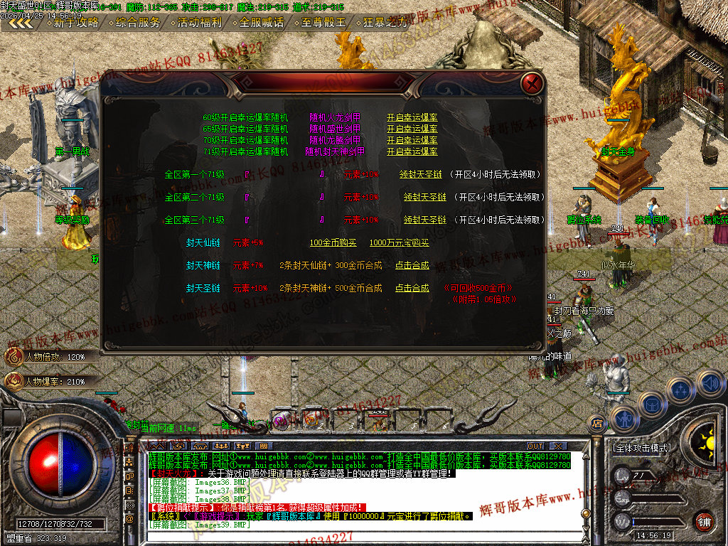 等级奖励:人物71级触发封天神剑甲系列一件,前三名71级额外可抢超级神链(可回收大米)