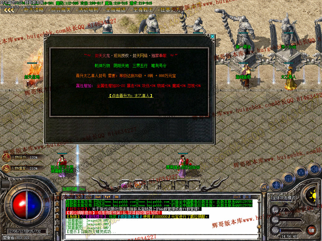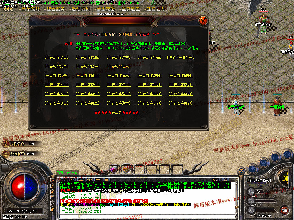 装备阶梯:雷霆→→战神→→火龙→→盛世→→龙腾→→封天神装(所有装备可爆出)